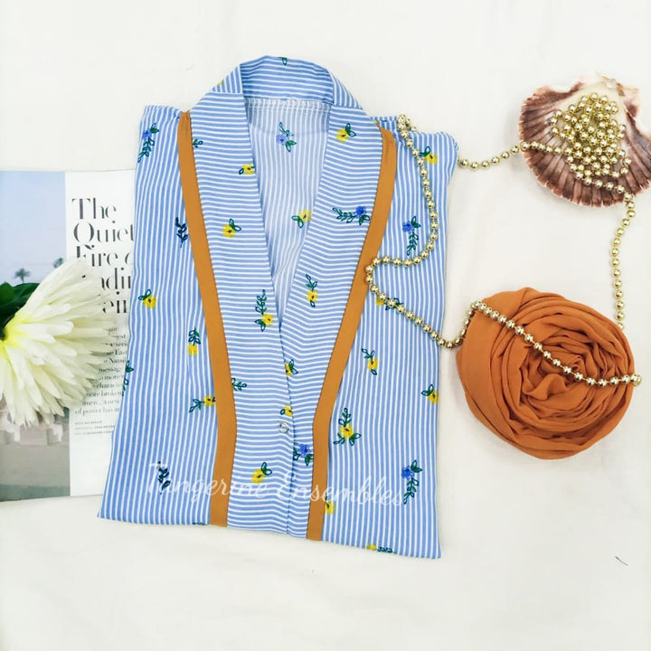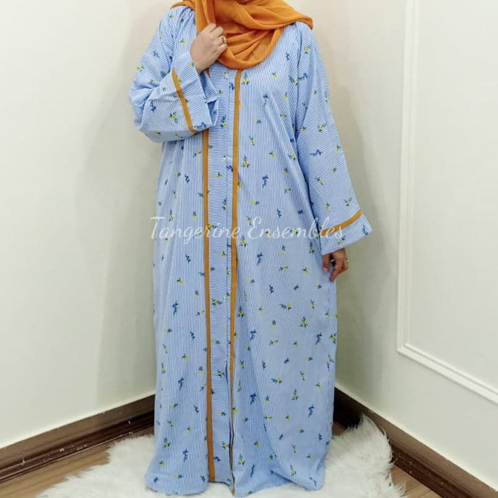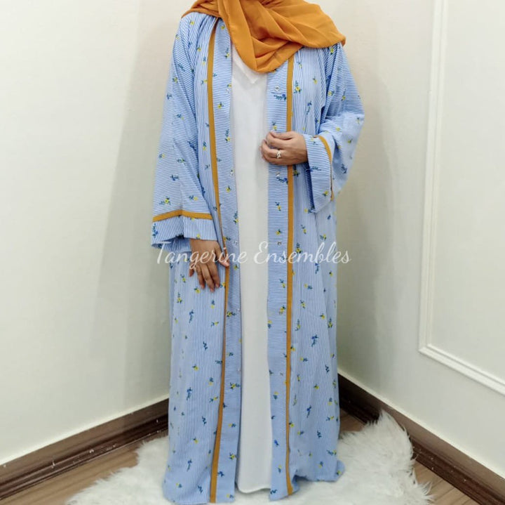 Elegant Light Colored Stripe abaya with soft detailing , Perfect for Daily Use , Light Weight & Airy , Make a Style Statement in Scorching Heat with Simplicity.