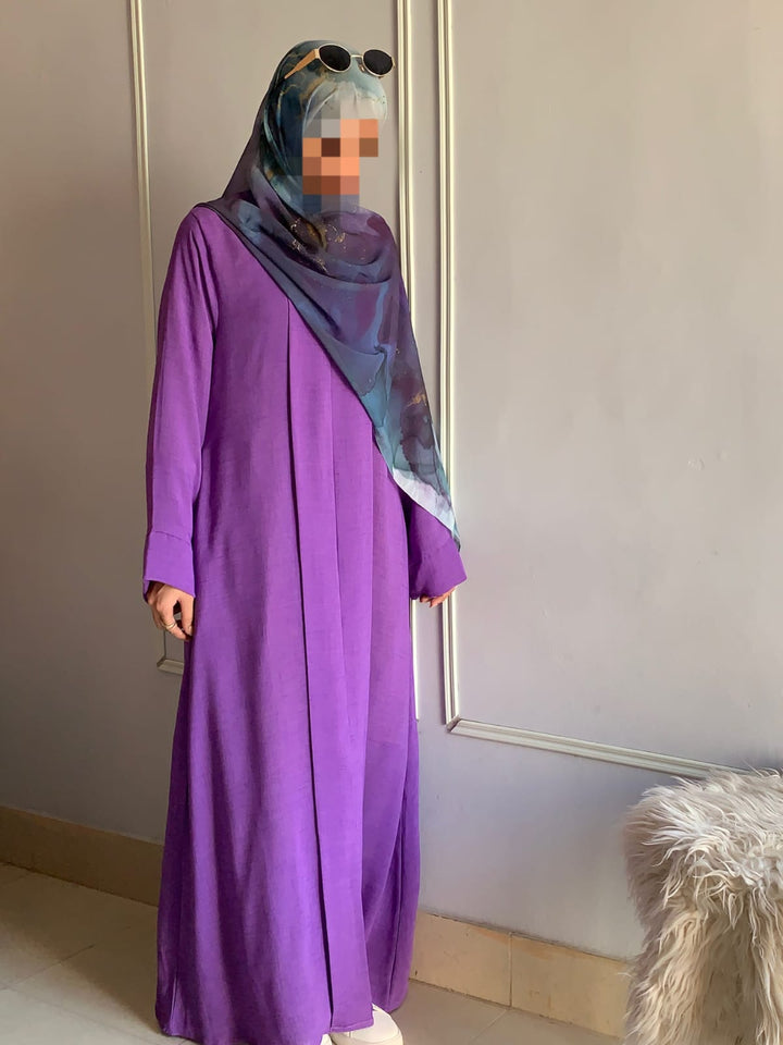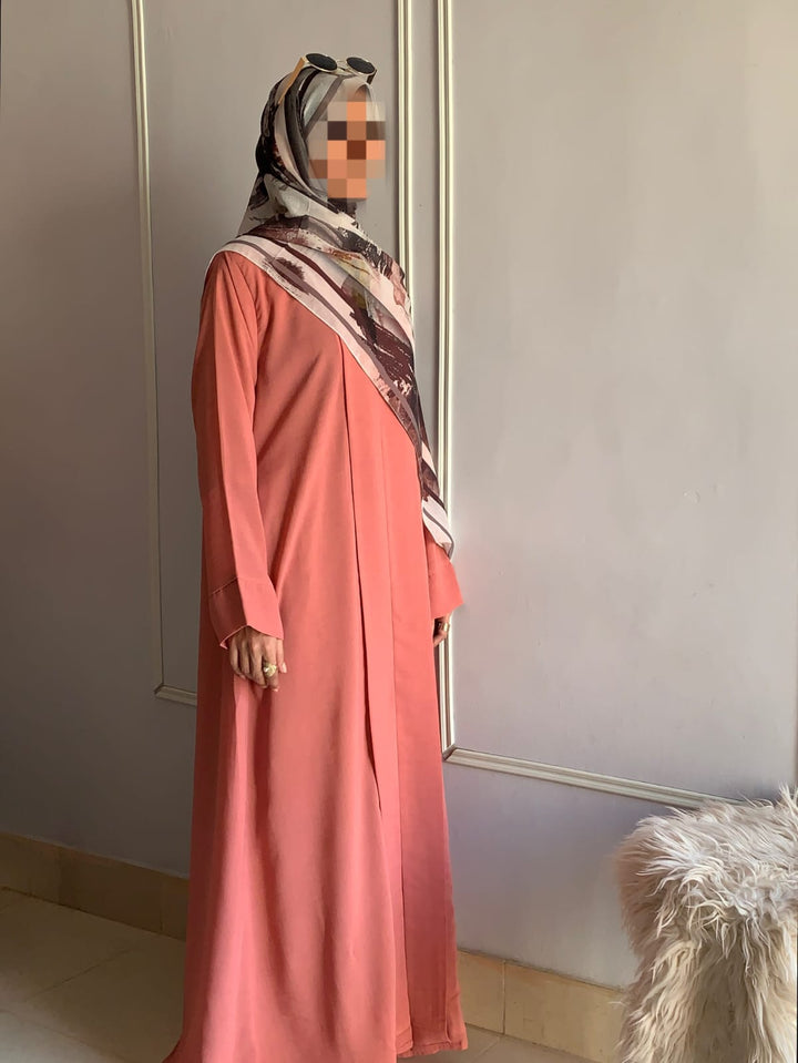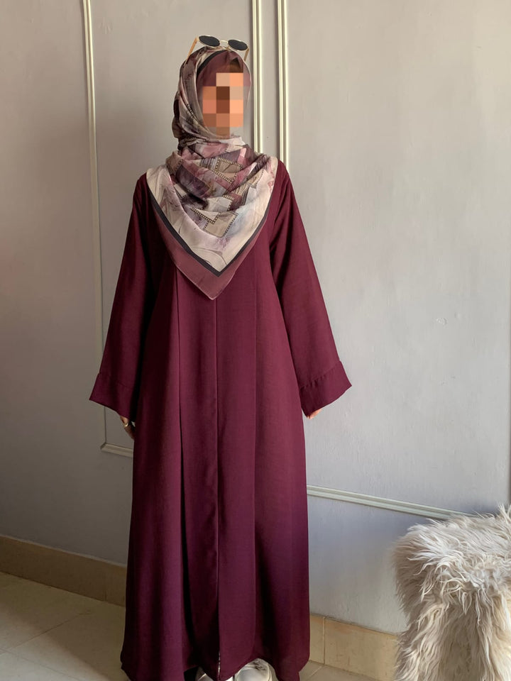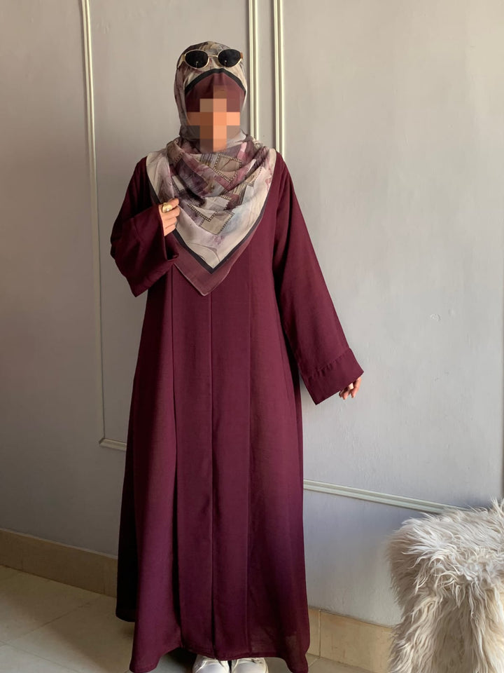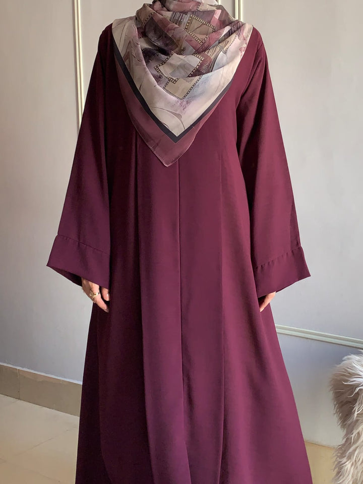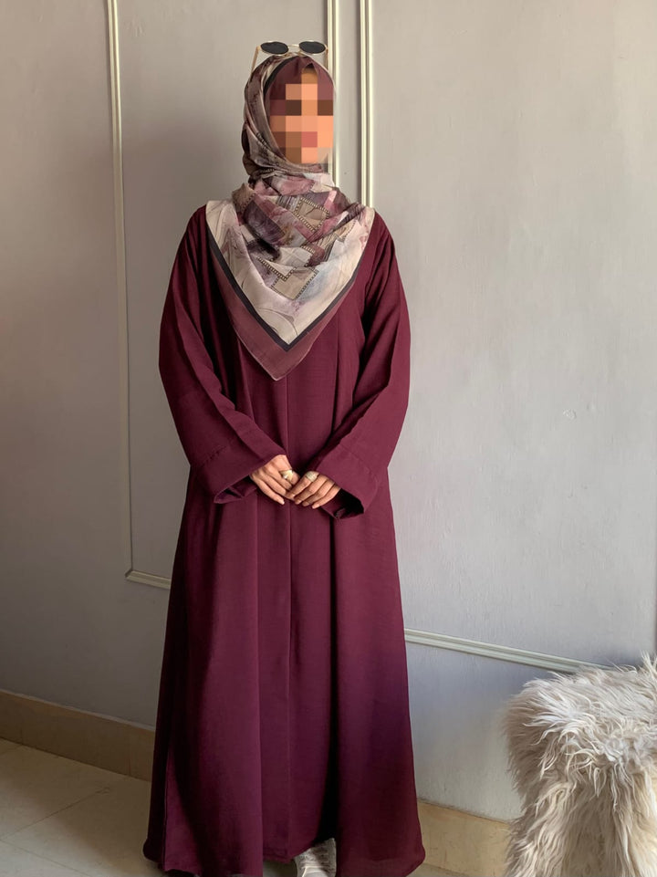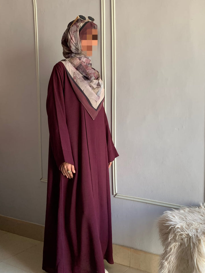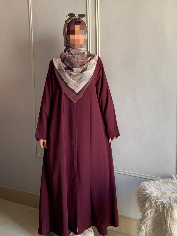 Crafted from light, breathable fabric with a soft texture, this abaya embodies effortless grace. Its simple design is beautifully elevated by subtle detailing, available in charming colors for every occasion. Pair it with a printed or plain hijab — the choice is yours