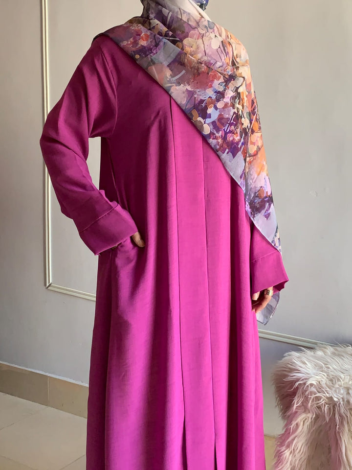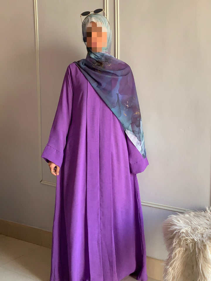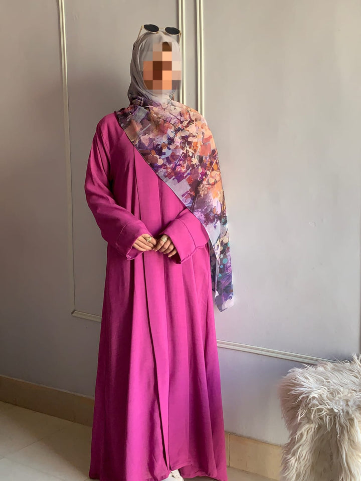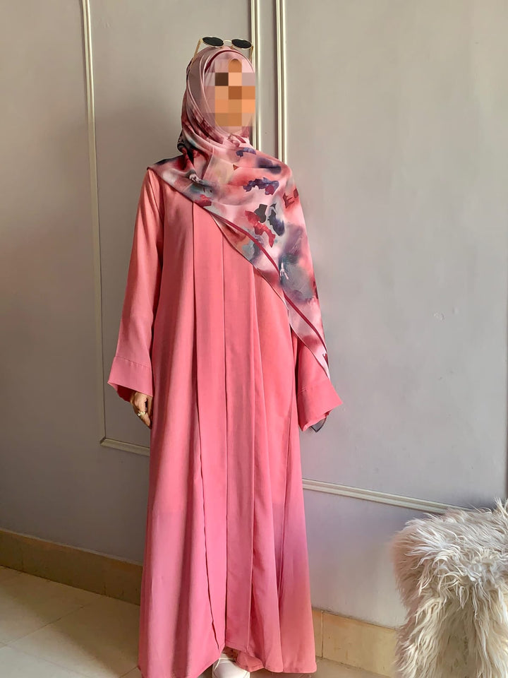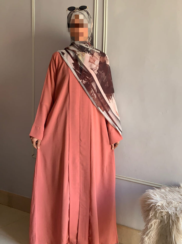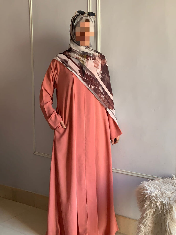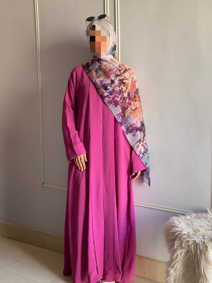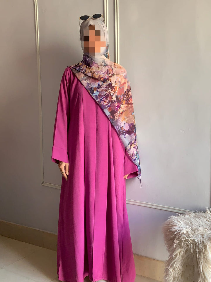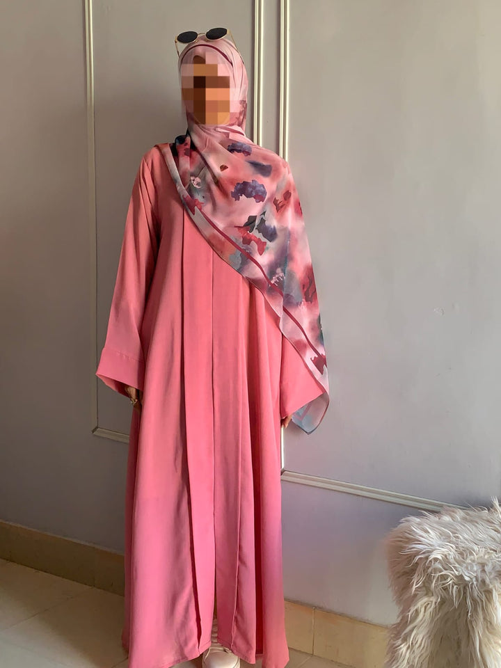 Crafted from light, breathable fabric with a soft texture, this abaya embodies effortless grace. Its simple design is beautifully elevated by subtle detailing, available in charming colors for every occasion. Pair it with a printed or plain hijab — the choice is yours