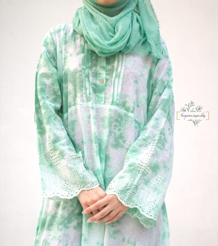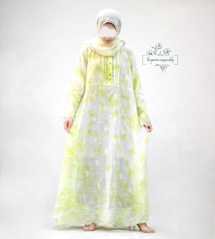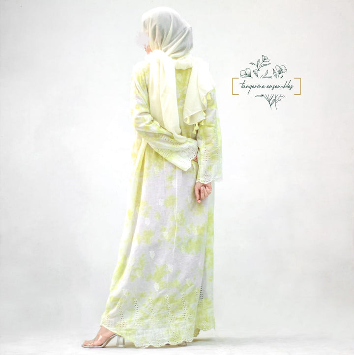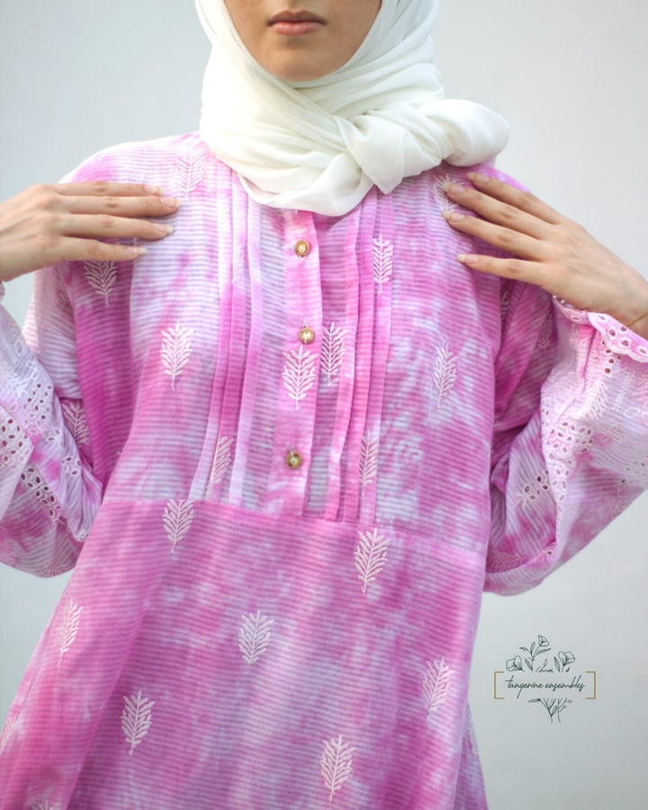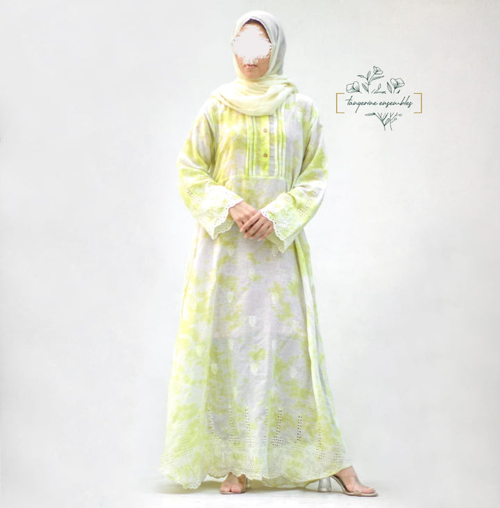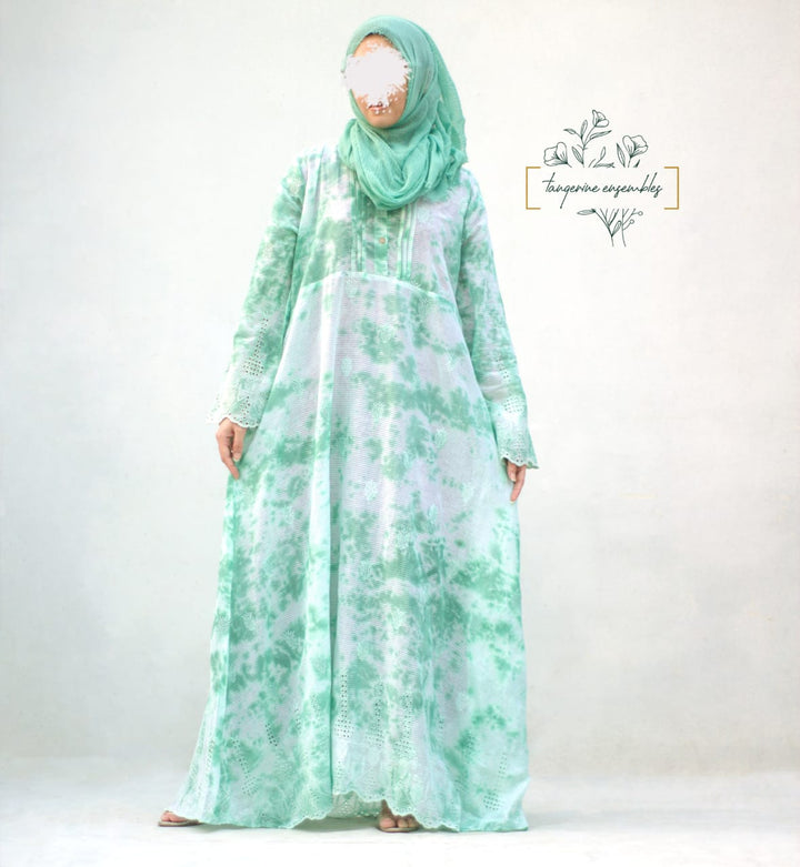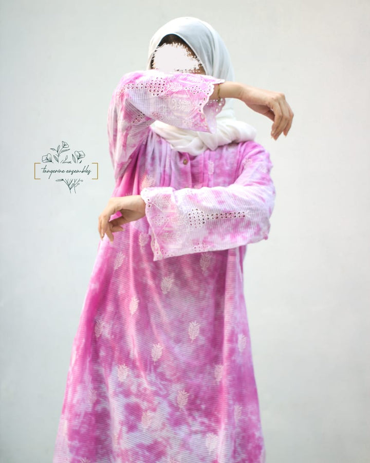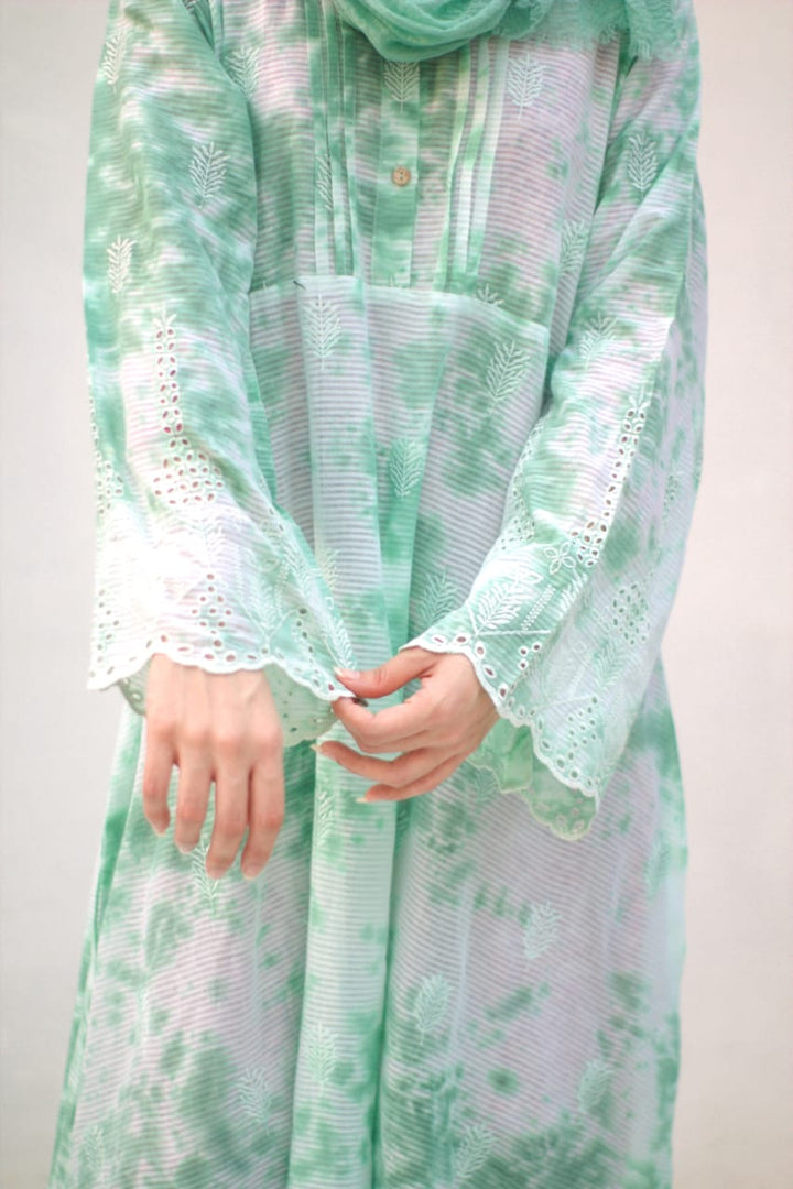 Introducing our lawn tie-and-dye abayas – lightweight, breathable, and perfect for summer. Adorned with chikankari borders, all-over embroidered motifs, pleated buttoned front bodice and Aline shape for a flattering fall. The self-textured lawn fabric offers all-day comfort, making it ideal for travel and everyday wear. The tie-and-dye shades add a vibrant, trendy touch to your modest wardrobe.