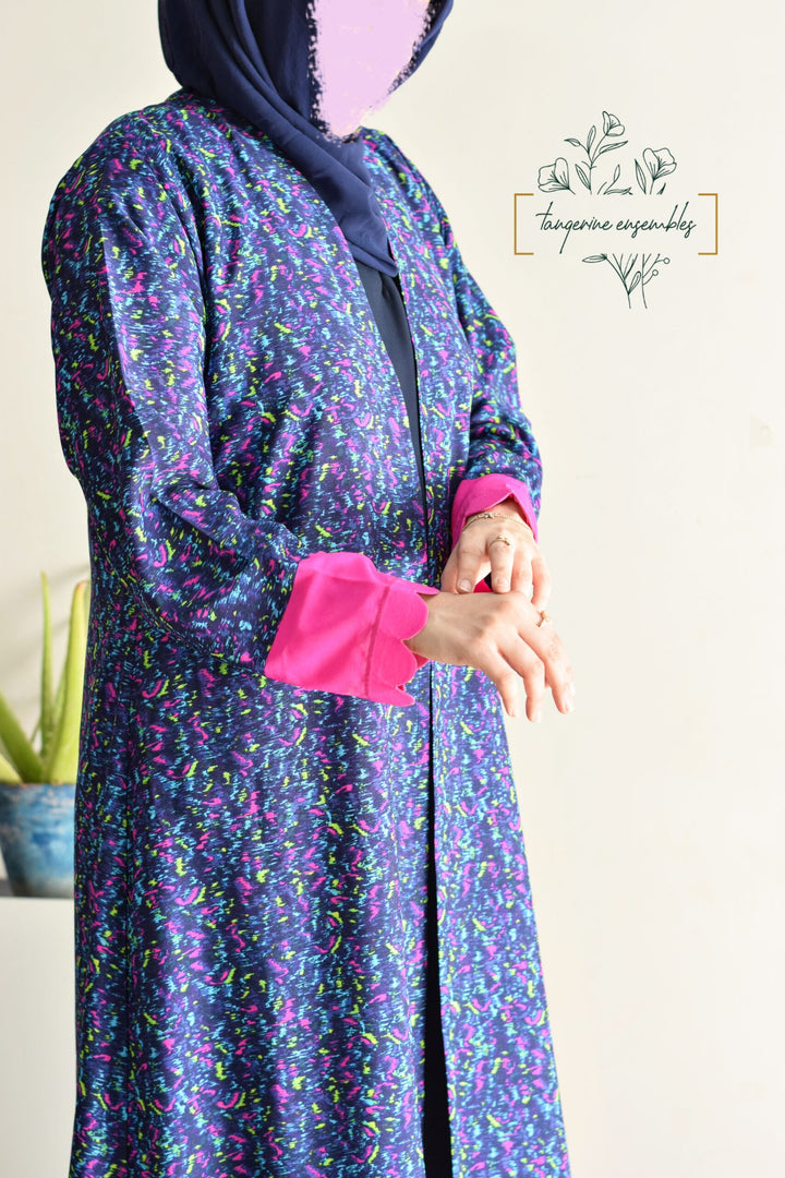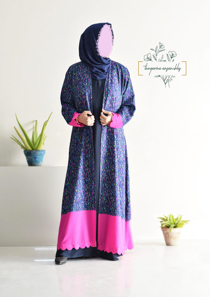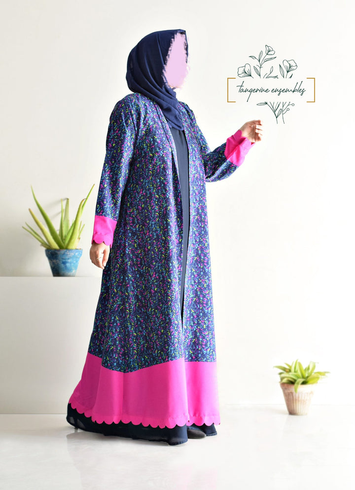 The scalloped sleeves and border elevate the design, offering flexibility to be worn as an elegant button-down A-line abaya or paired with an inner for added depth…
