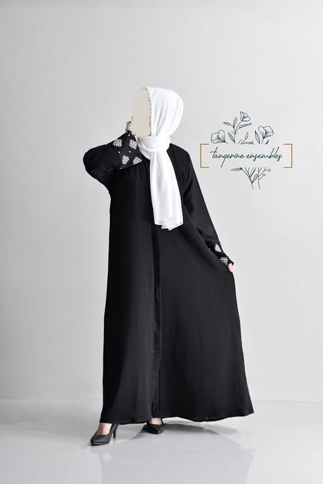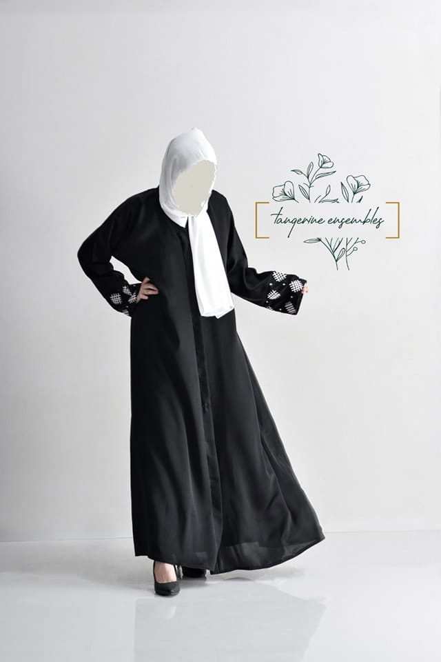 A timeless black abaya with white embroidery – the perfect blend of elegance and simplicity. Your go-to abaya for everyday wear, offering a classic look that will still make you stand out from the crowd.