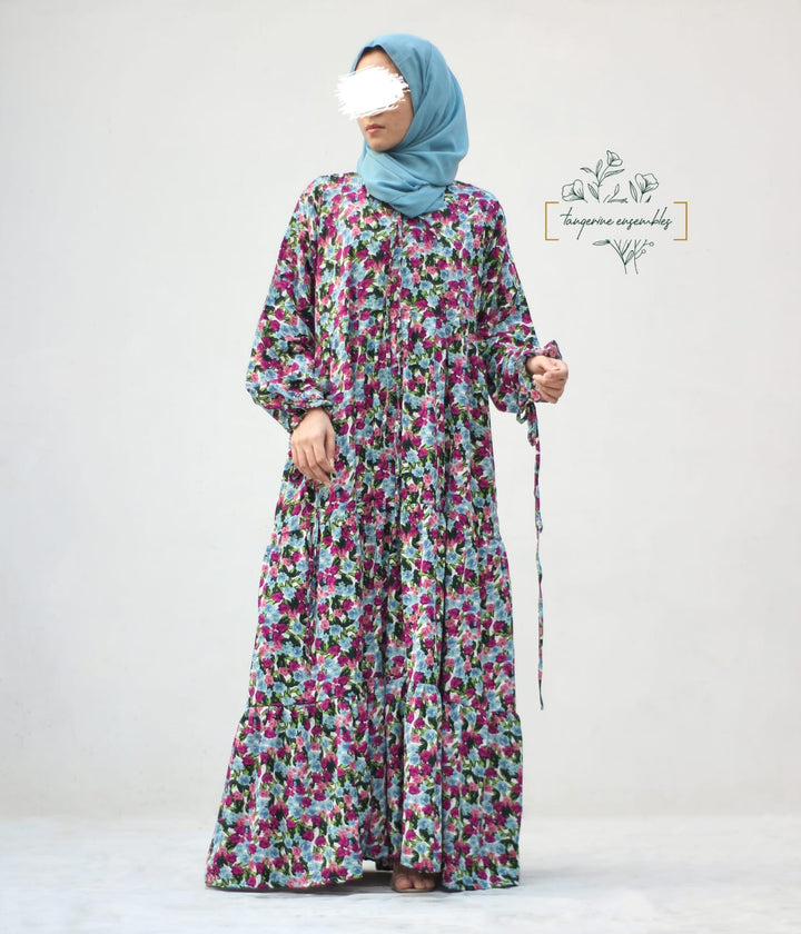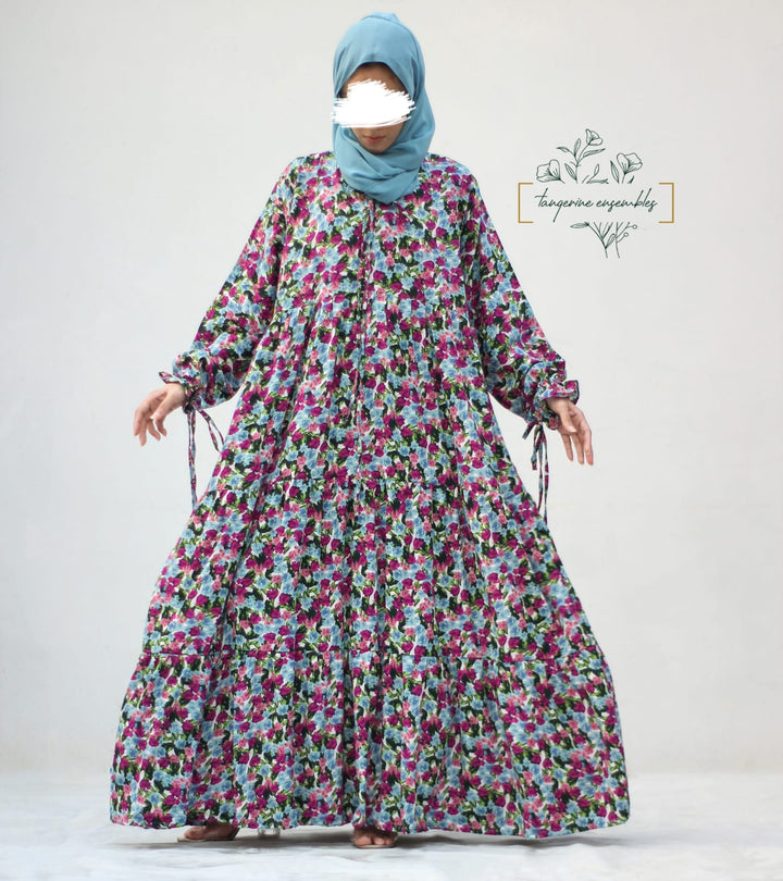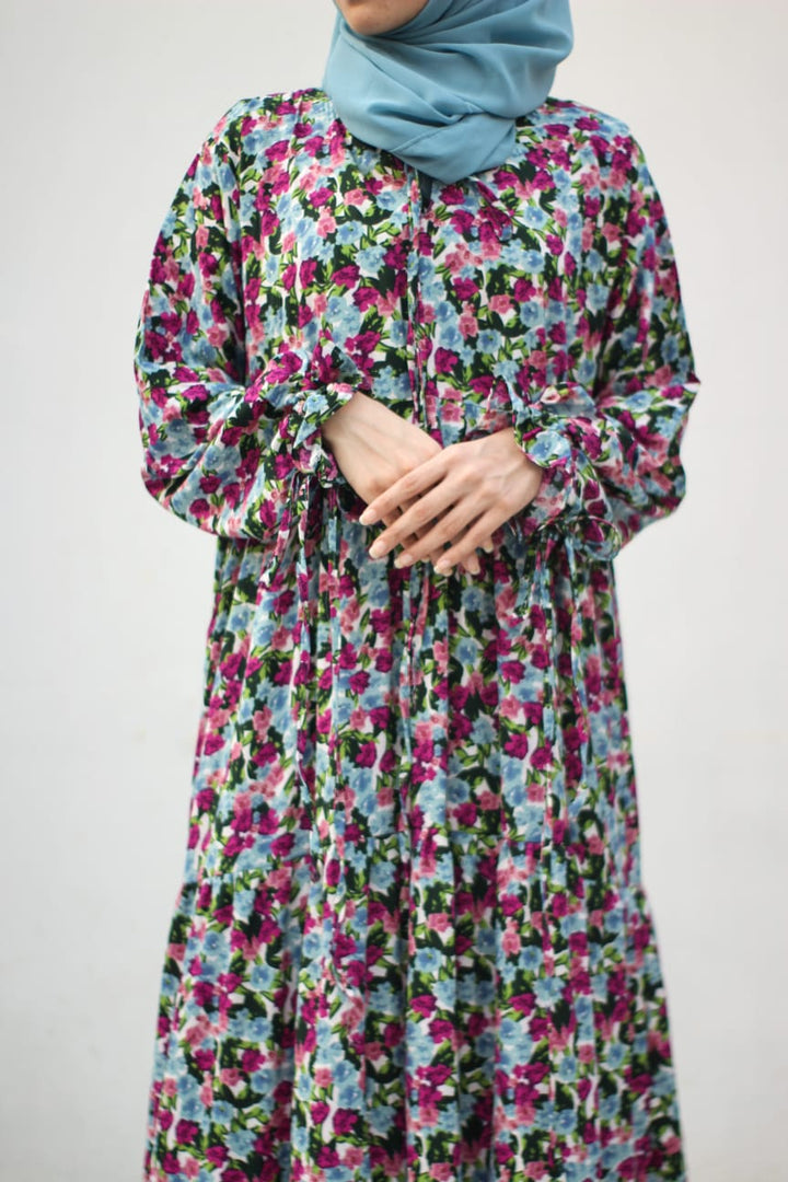 Turn heads in our multi-color floral maxi dress for women. Its flary, flowy silhouette is designed for comfort, while the soft vibrant floral print makes it perfect for summer fashion, travel outfits, beachwear, or casual evenings. Ribbons on the sleeves and neckline add the trendy details you’ll adore.