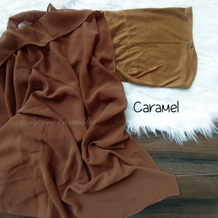 Stay stylish and secure with breathable Georgette hijabs featuring attached caps no slipping, no hassle, just effortless elegance in every color!