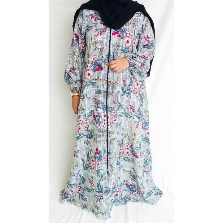 Let style take flight in our airy, flowy Zipper Abaya, where smoking sleeves add a whimsical touch to your every movement.