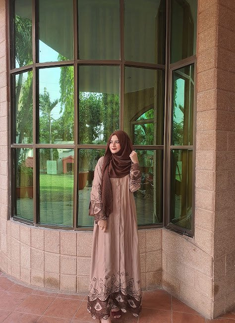 Discover the luxury of Nada Abayas, adorned with intricate embroidery on the sleeves and hem, and delicate pintucks to highlight the fabric. Available in Black, Mauve, Beige, and Grey.