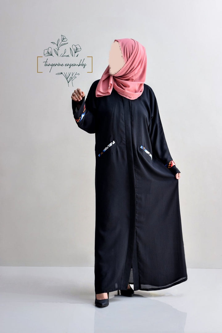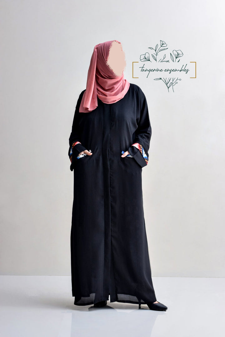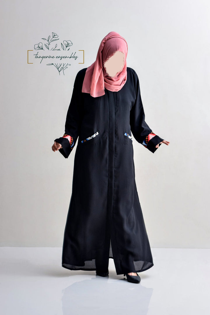 Not your ordinary black abaya—this one has a stylish edge that sets you apart.