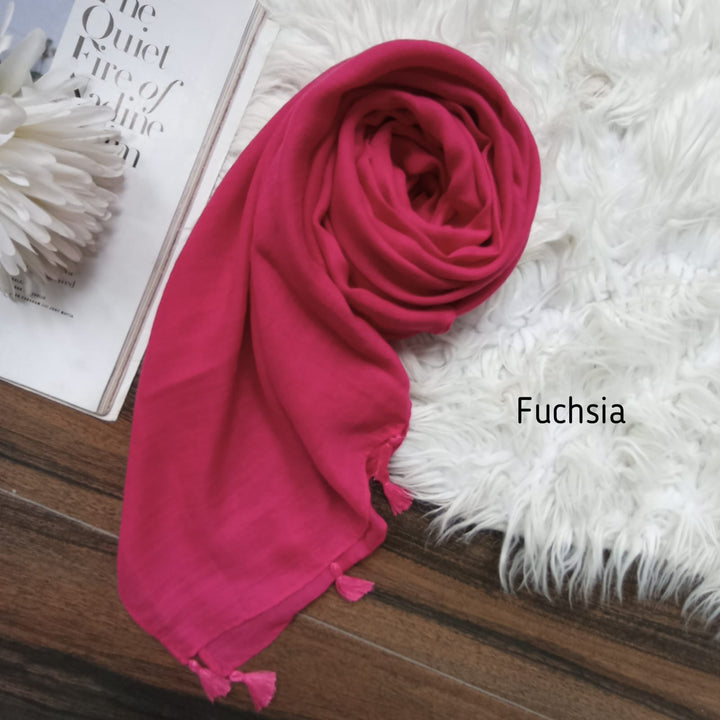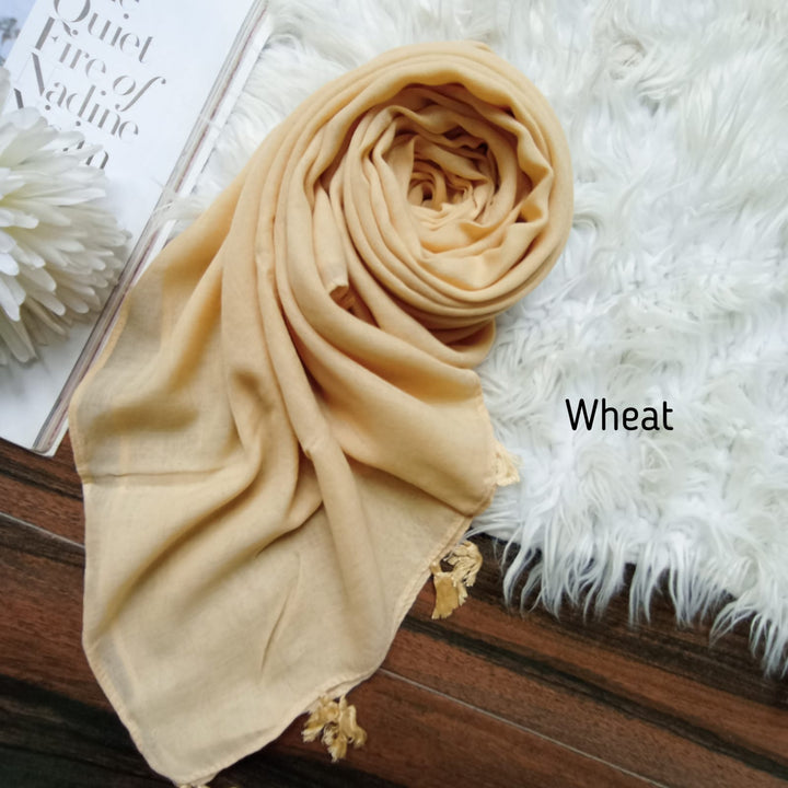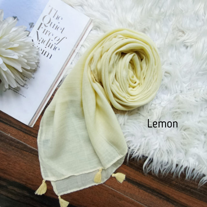 Lightweight, breezy, and soft, our Plain Lawn Tassel Hijabs are made for everyday comfort. Crafted from summer-friendly lawn fabric, they drape effortlessly and stay breathable all day long. The tassel finish adds a touch of chic detail, while the wide range of colors makes them easy to pair with any outfit.