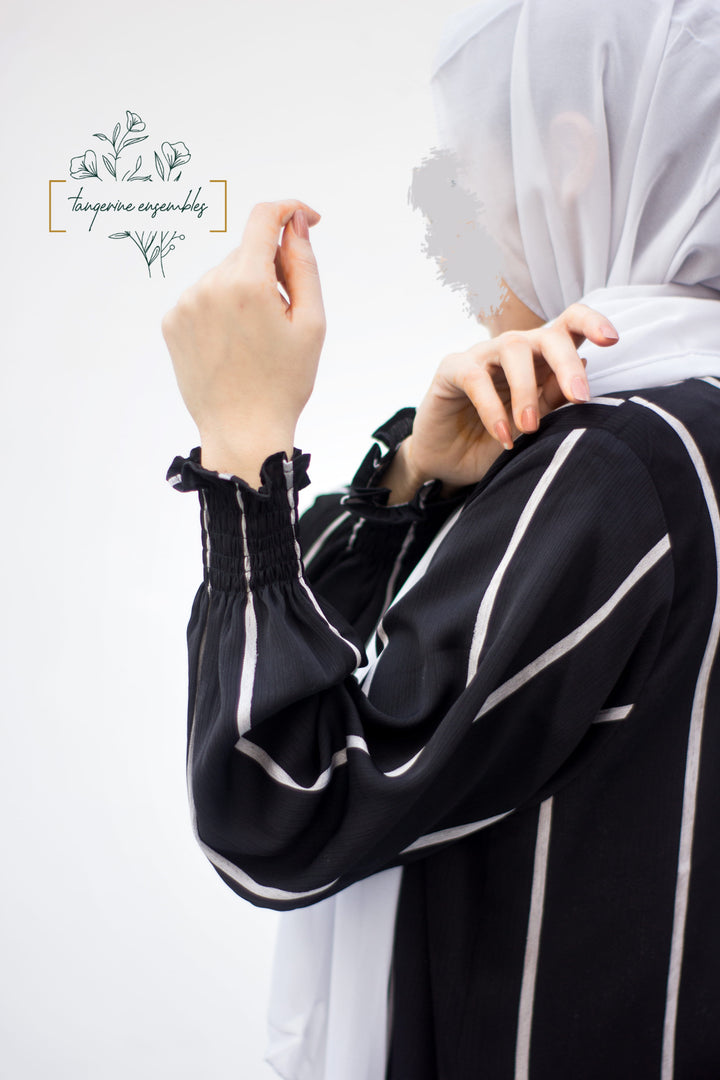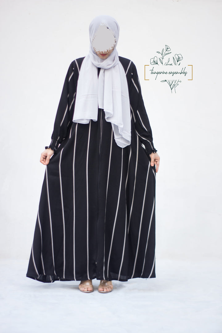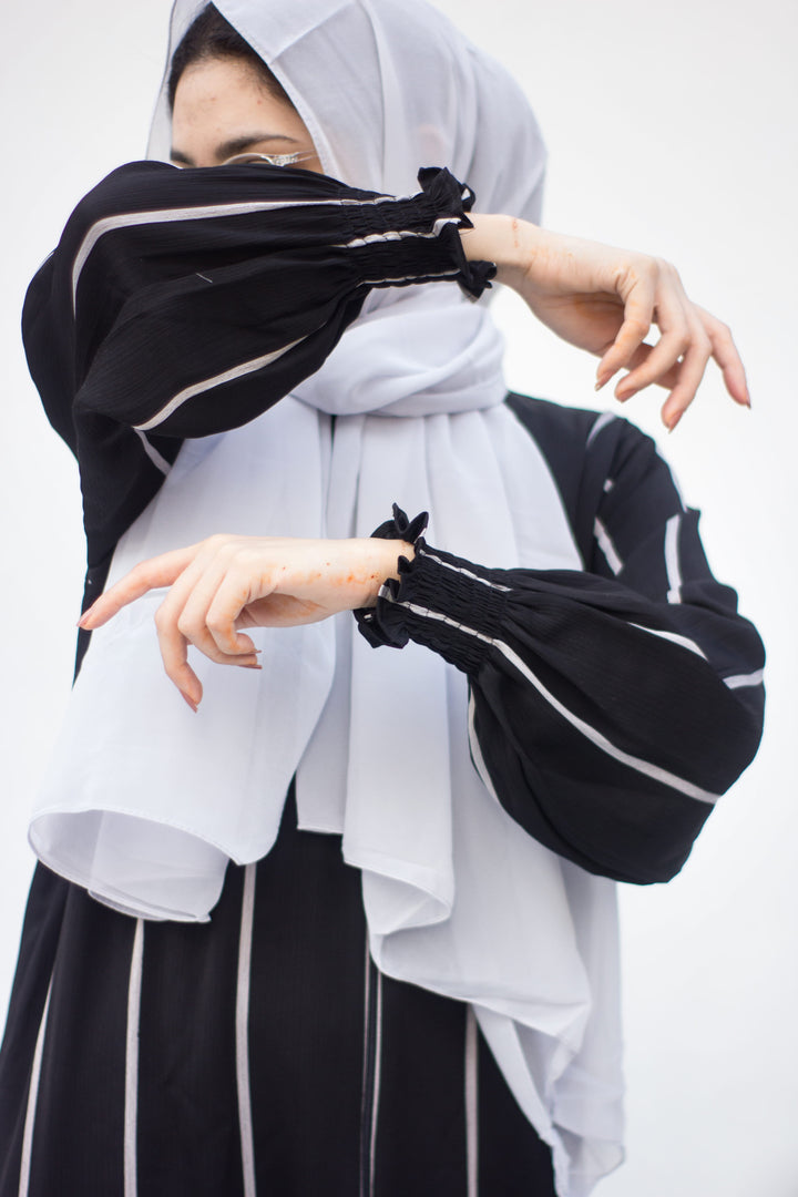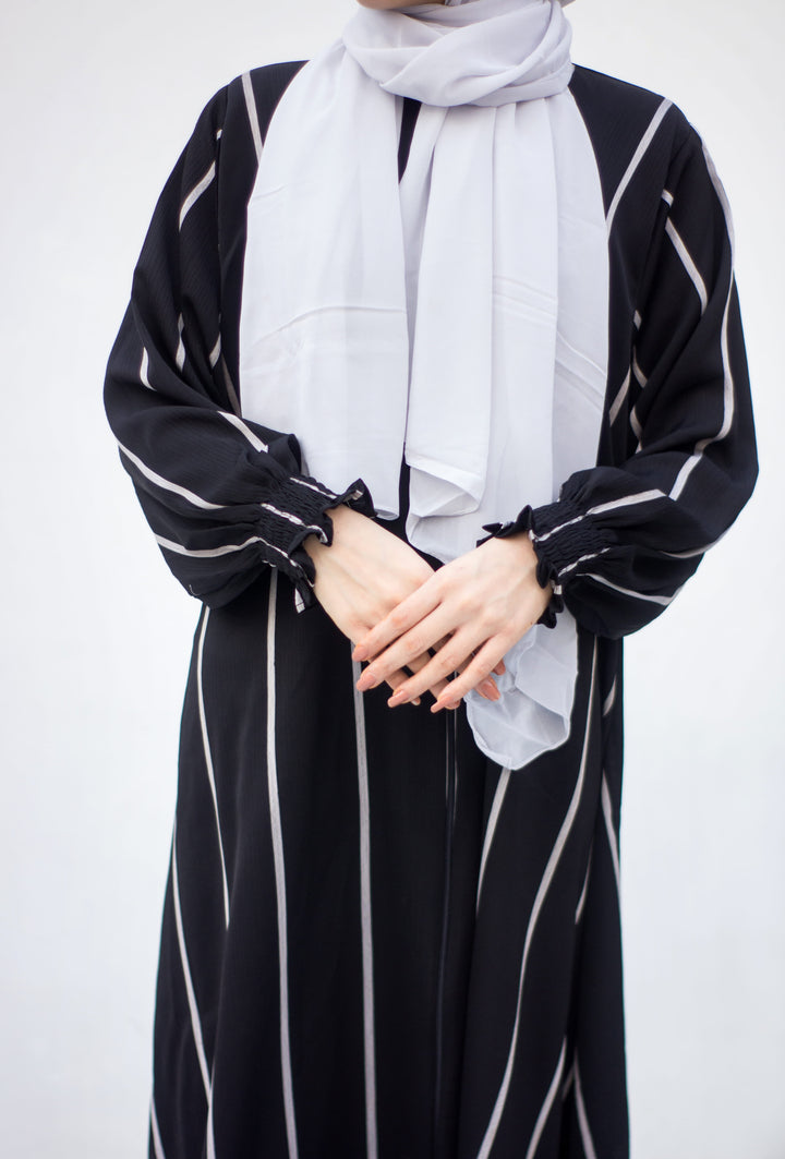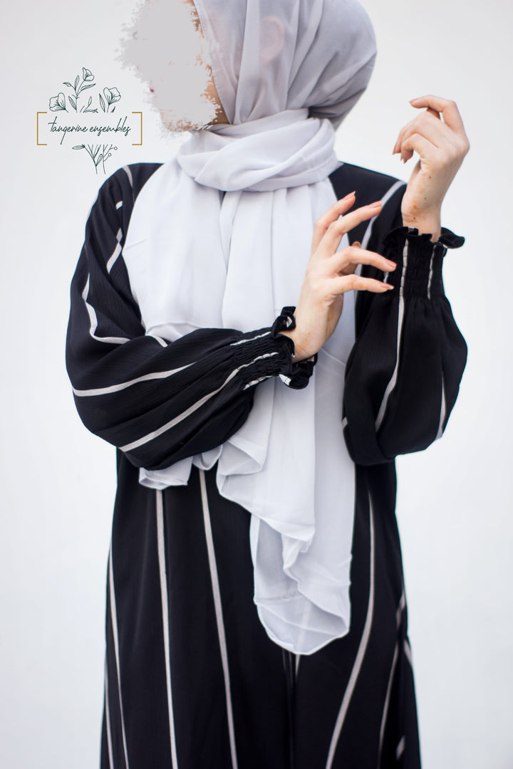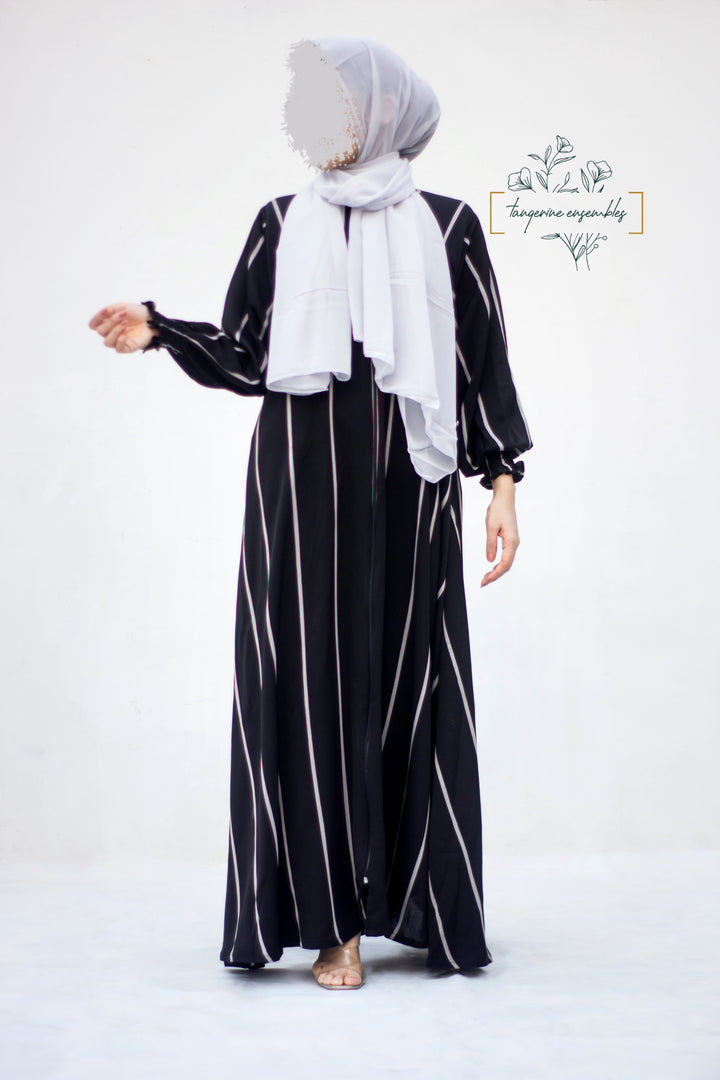 Unveil a perfect blend of fashion and ease in our stylish zipper abaya, enhanced by the allure of elastic sleeves..