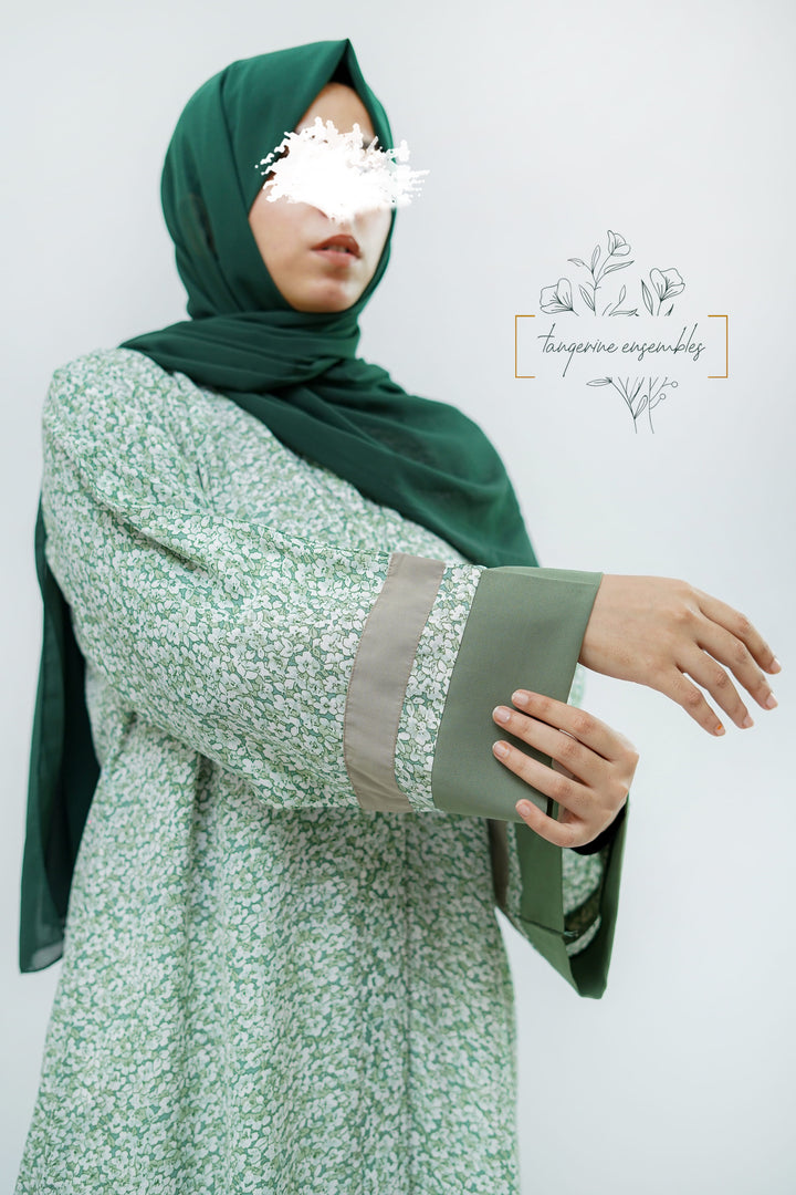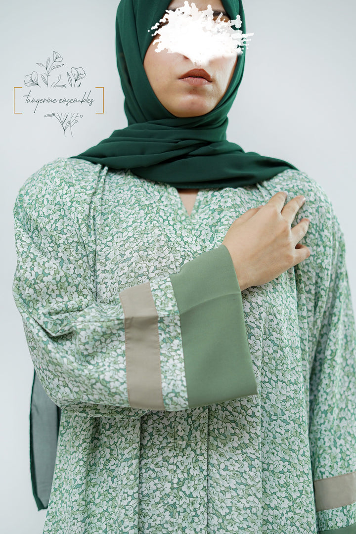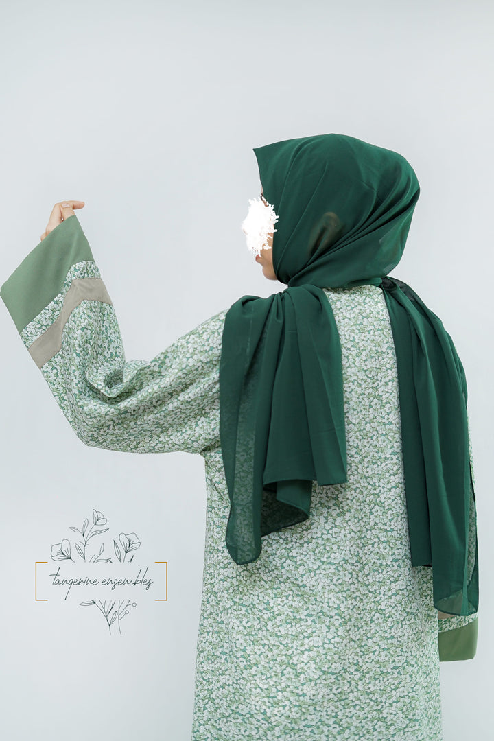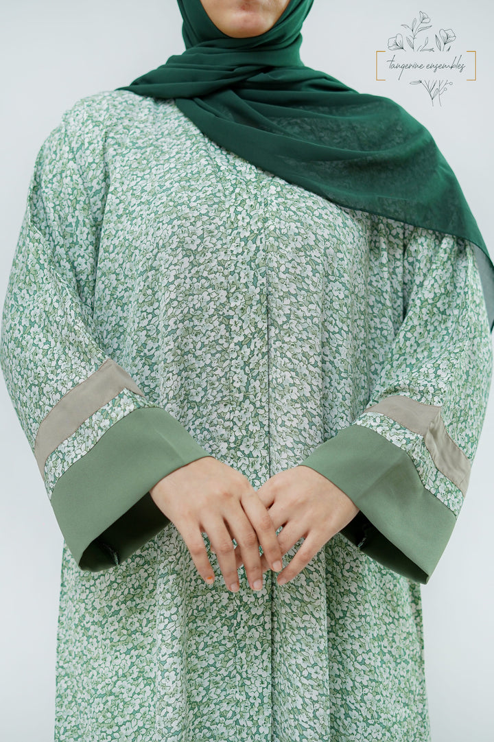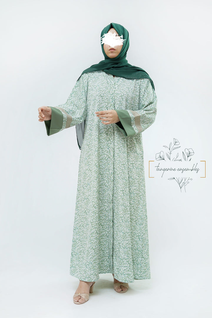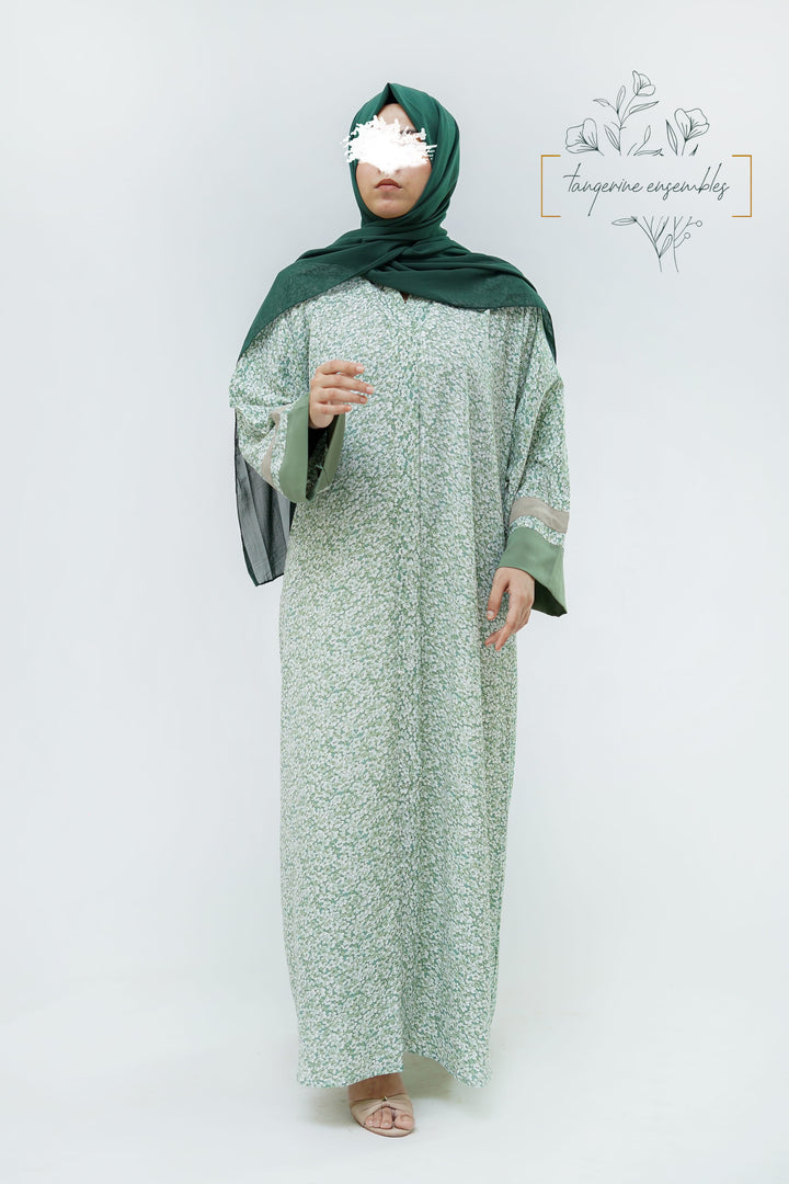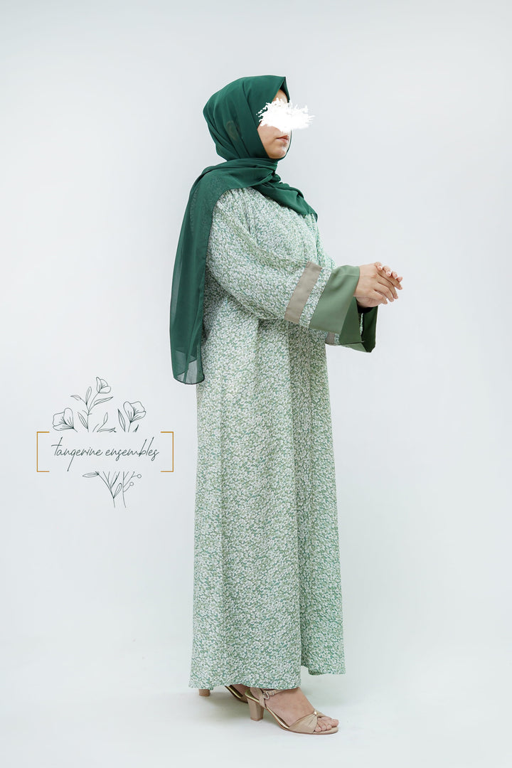 Simple yet striking — this green floral abaya blends comfort with charm.