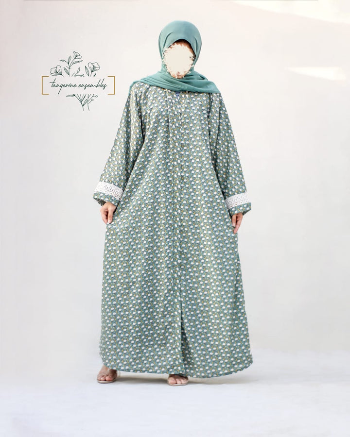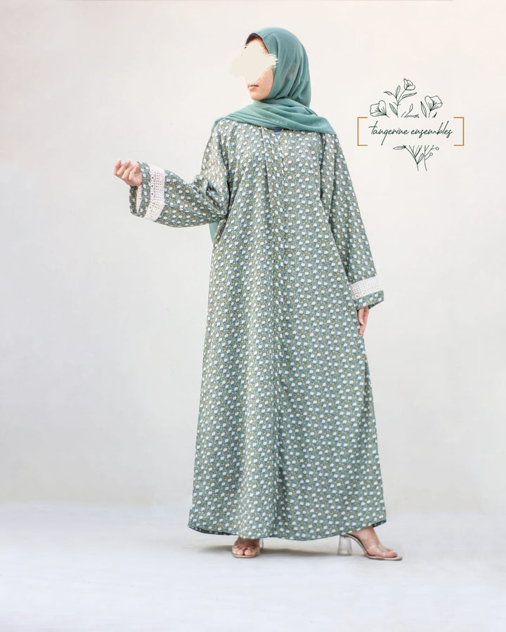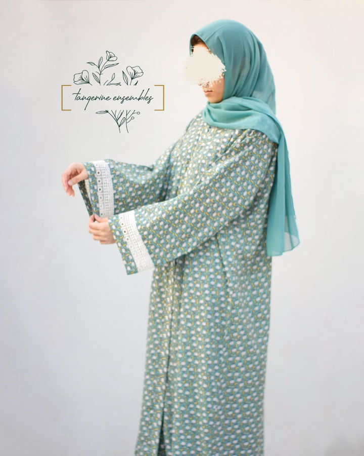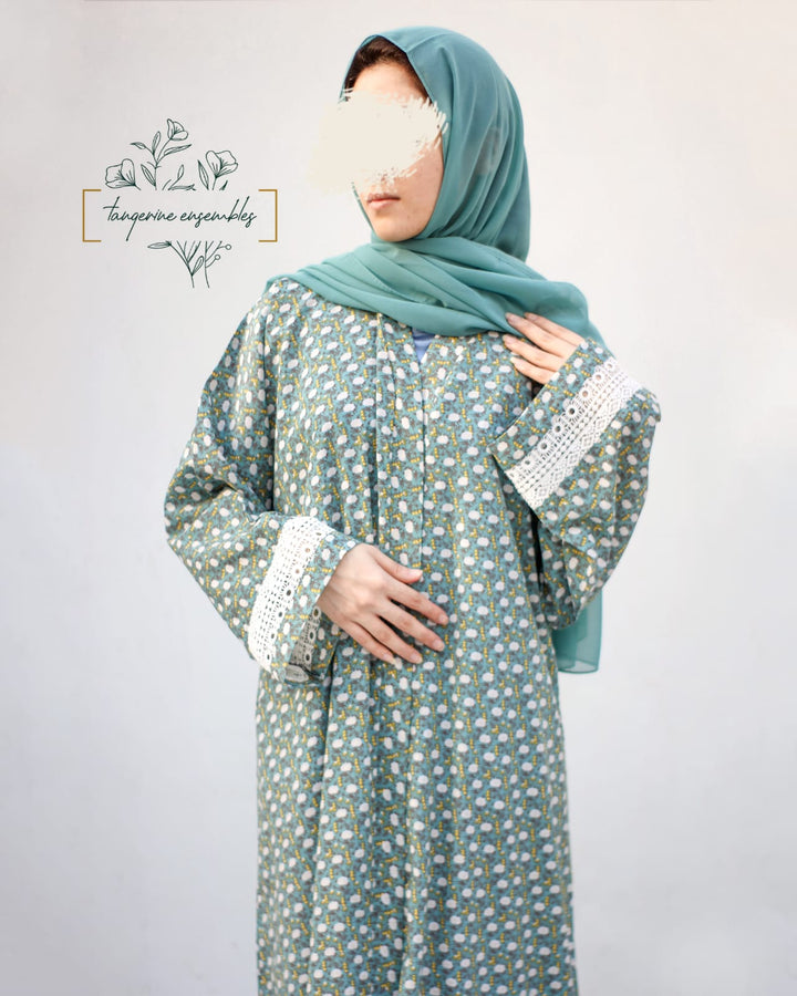 Step into summer with elegance and ease in our printed abaya. Designed with a lightweight, breathable fabric and layered sleeves-on-sleeves detail that adds a graceful flair. The soft green hue is as calming as a summer breeze — perfect for staying cool while looking effortlessly chic.