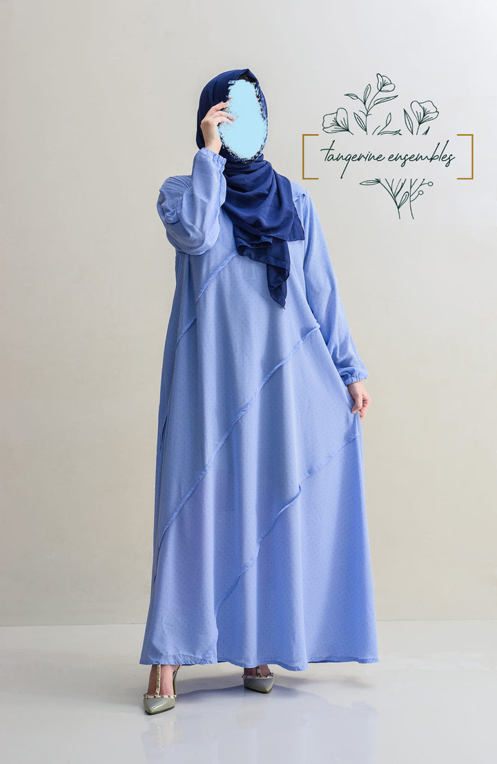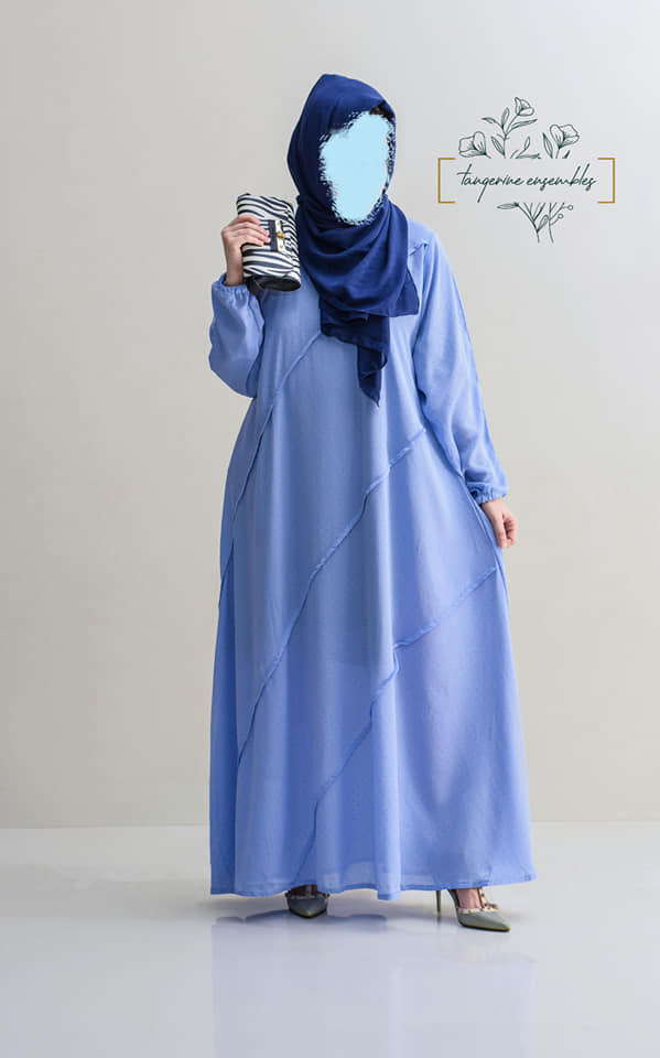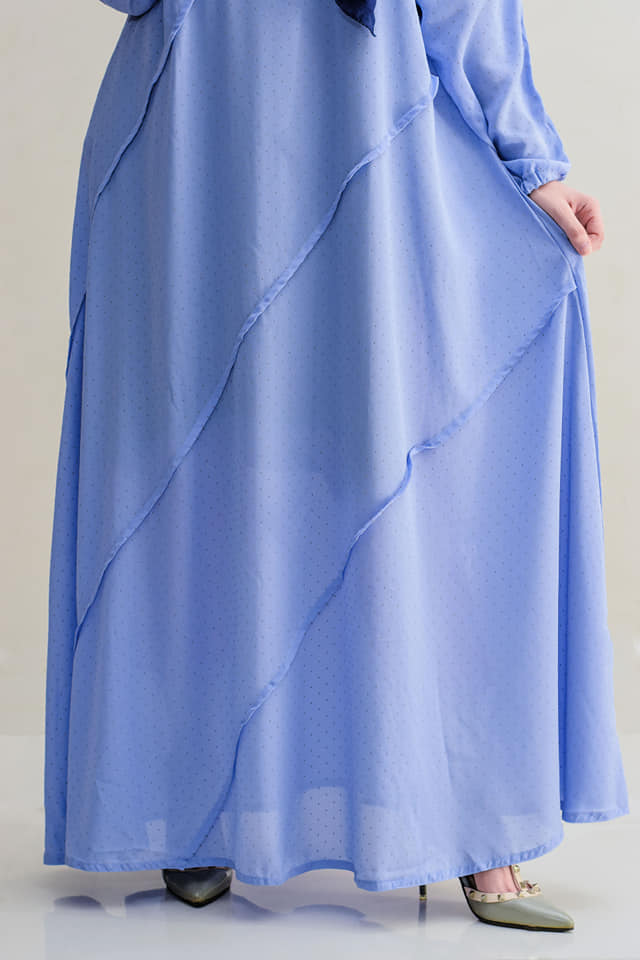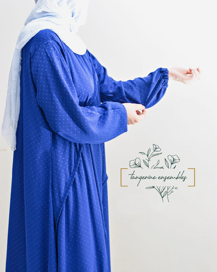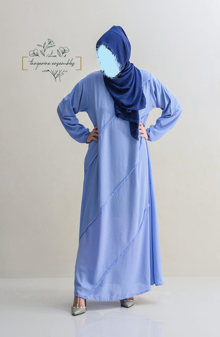 Designed in Blue , it radiates calmness and class, making it versatile for both everyday wear and special occasions. Paired with a contrasting navy hijab, this abaya is your go-to choice for a chic and modest statement.