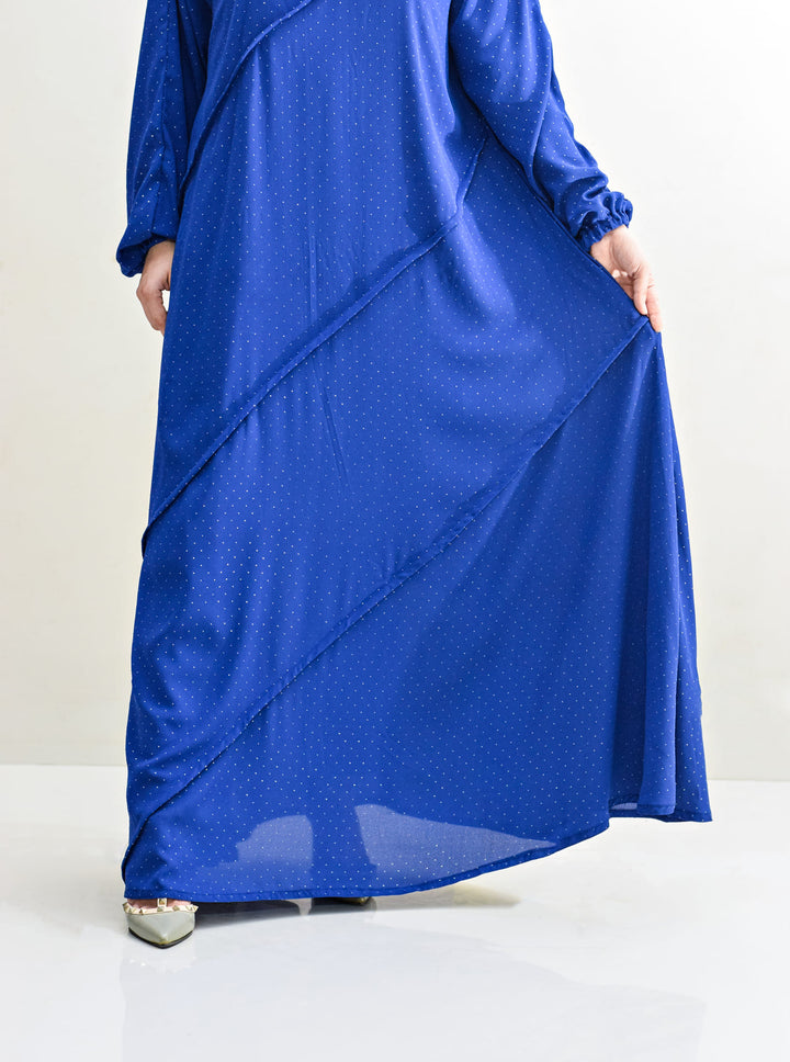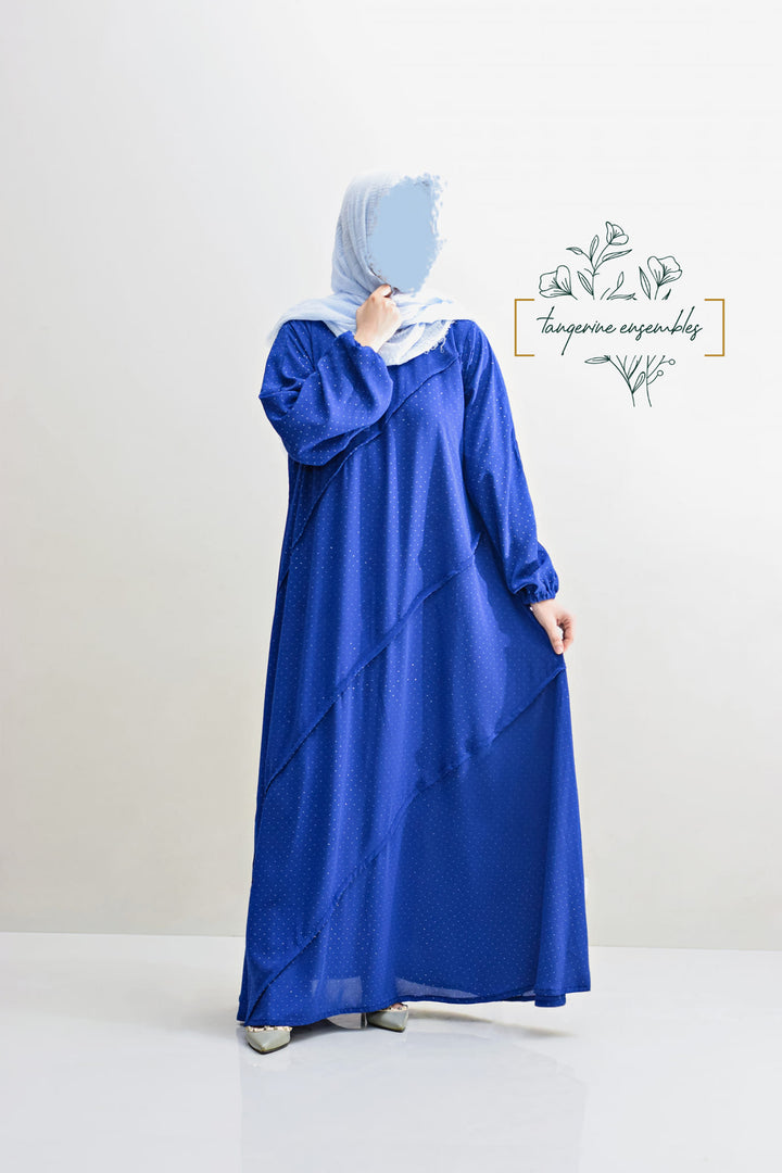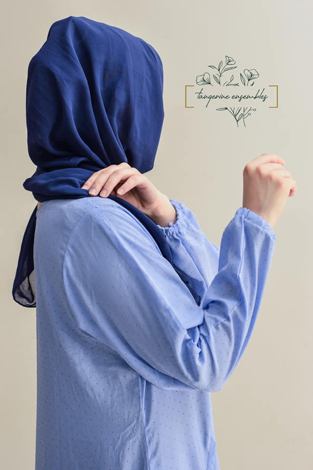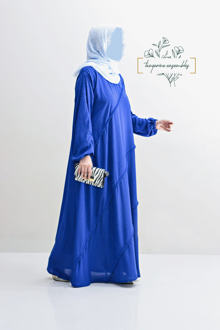 Designed in Blue , it radiates calmness and class, making it versatile for both everyday wear and special occasions. Paired with a contrasting navy hijab, this abaya is your go-to choice for a chic and modest statement.
