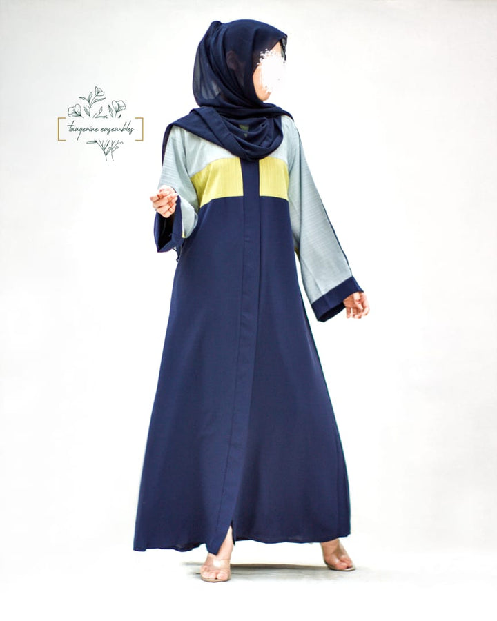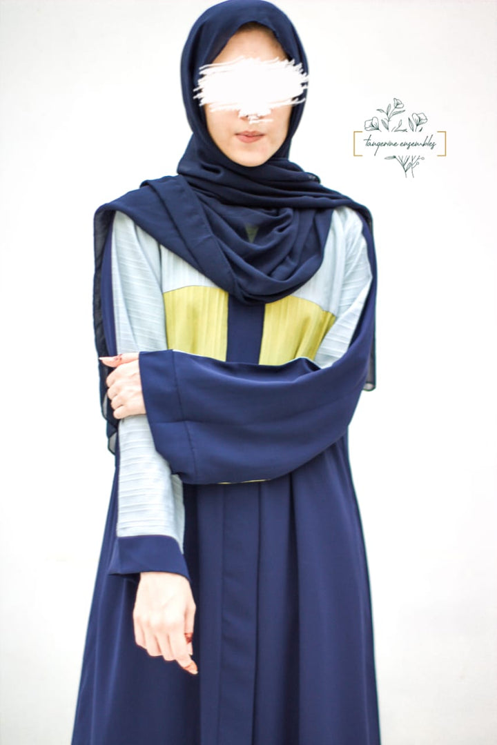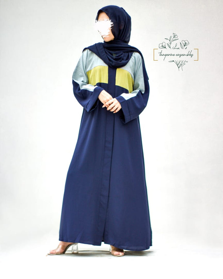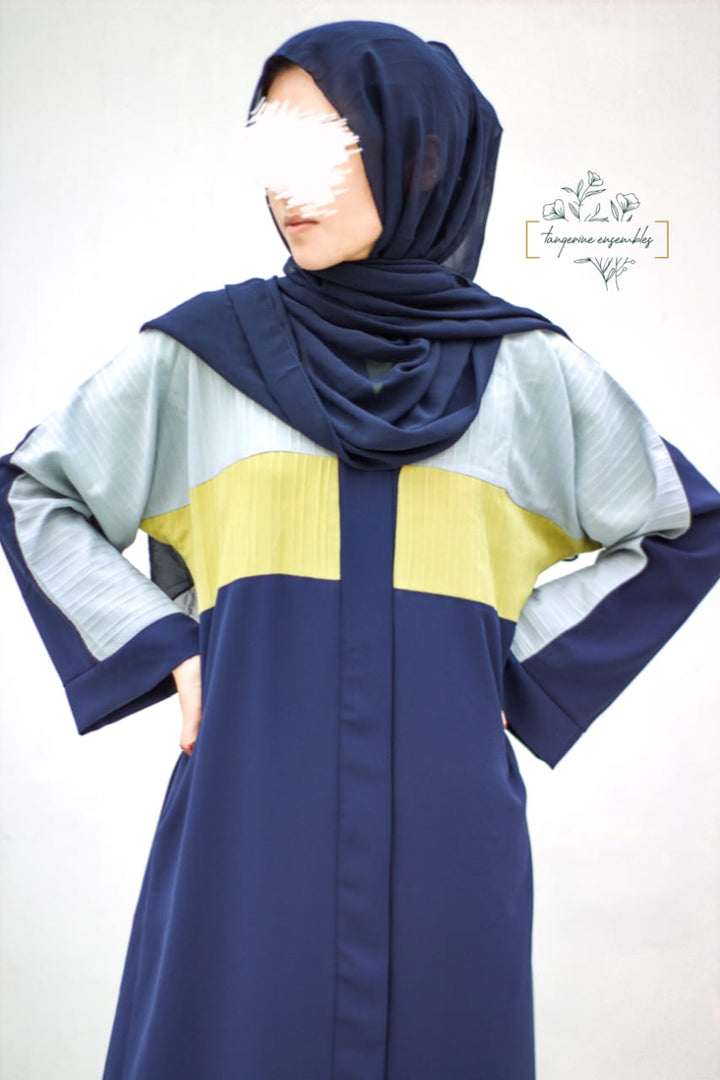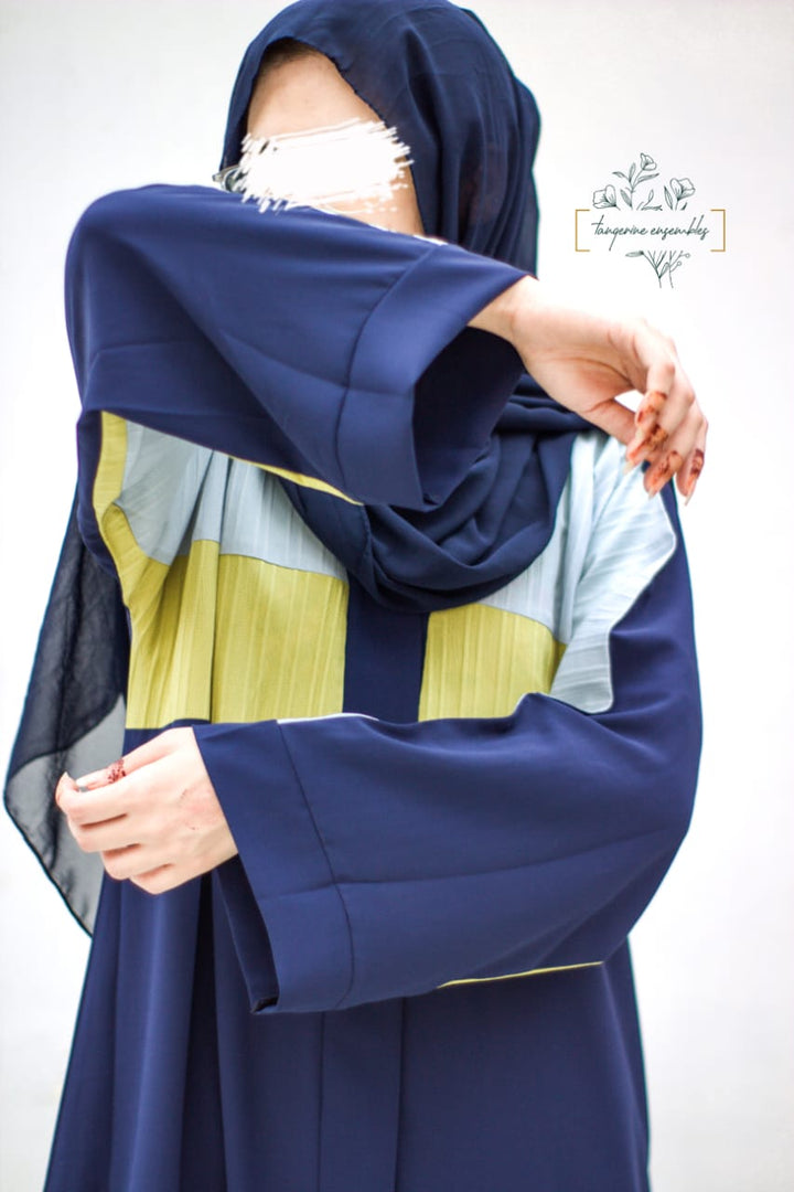 A fresh take on modest fashion – this blue abaya stands out with sporty sky blue and green stripes running across the sleeves and body. The design is simple yet makes a bold statement. Crafted from breathable, airy fabric, it's perfect for everyday wear, keeping you cool and stylish all day long.