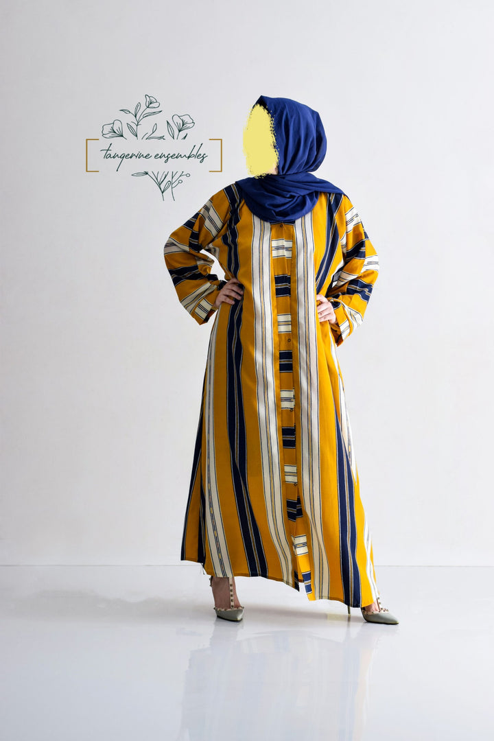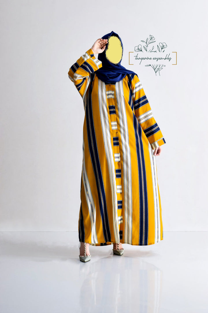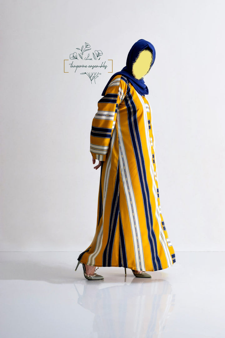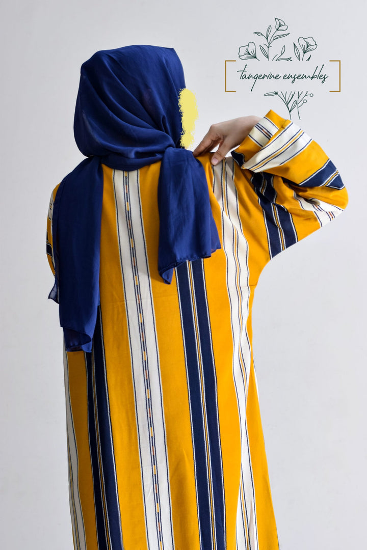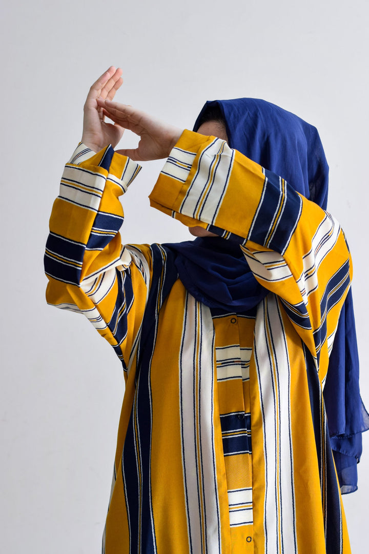 This vibrant striped Georgette abaya combines bold colors and timeless elegance for the perfect statement piece.