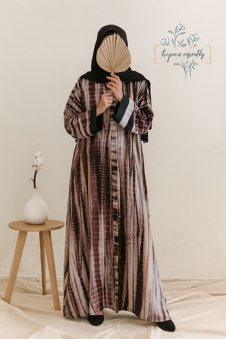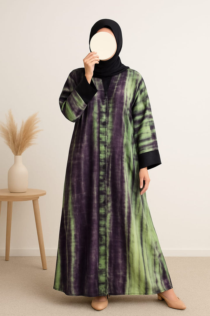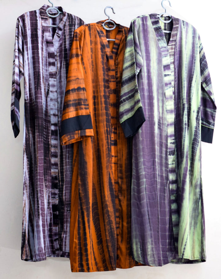 Bold and beautiful – our tie-dye abayas in three striking contrasts combine traditional charm with a modern flair.