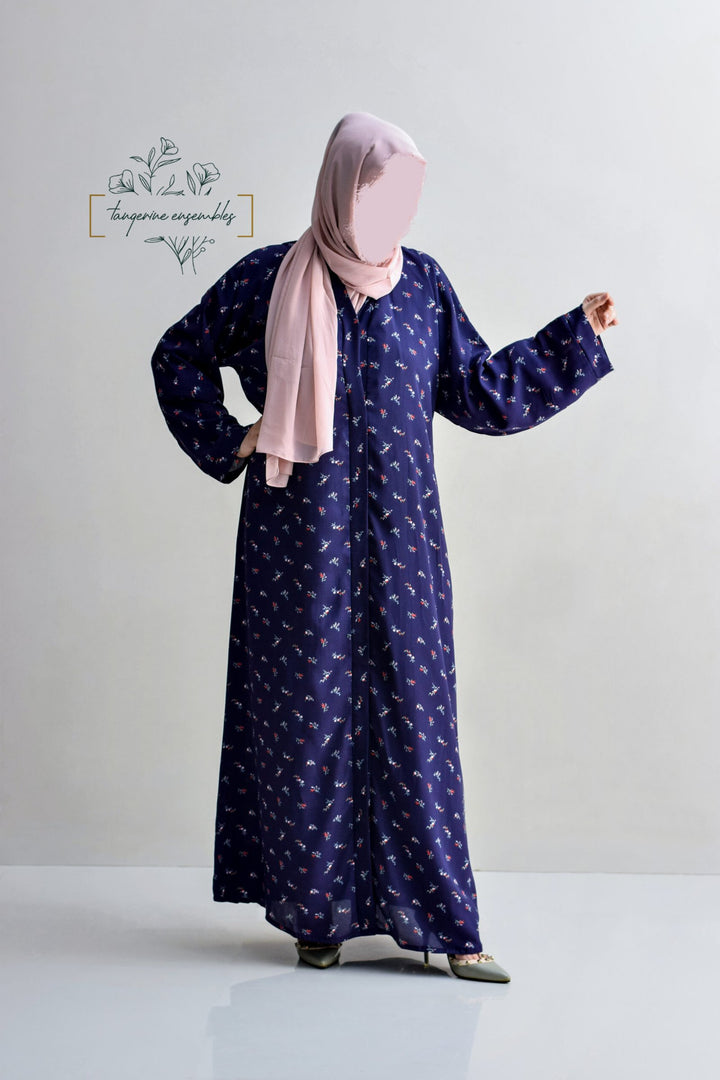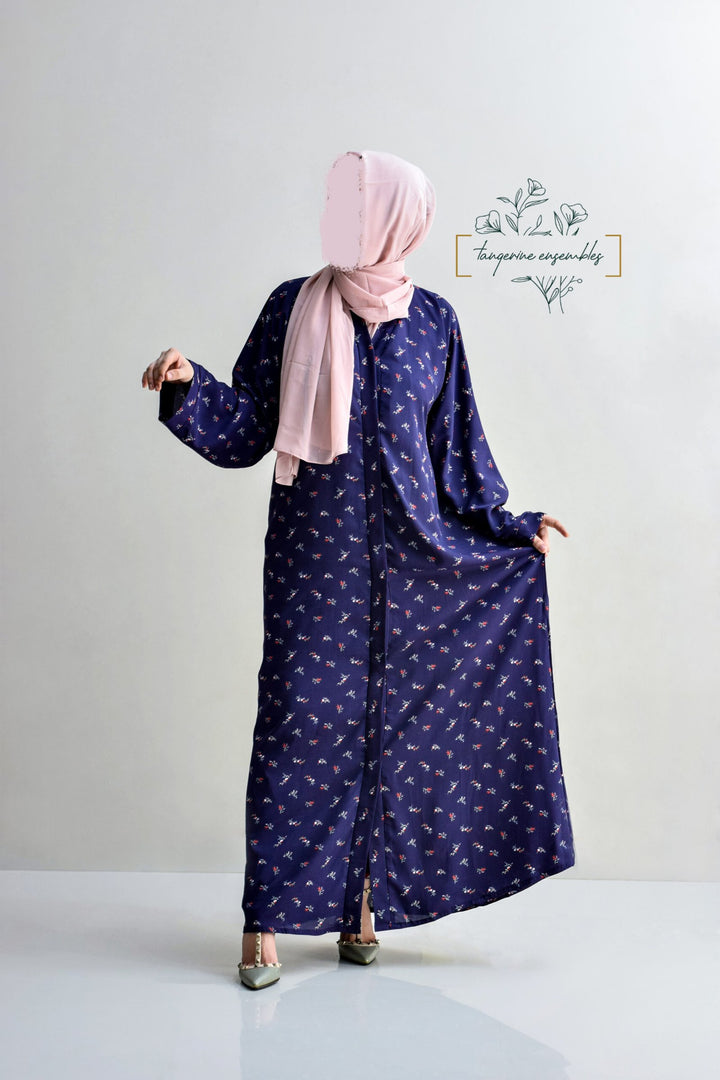 Radiate charm with our purple floral abaya, tailored for everyday ease. Featuring a striking print and lightweight fabric, it's an essential piece that combines grace with modern flair.