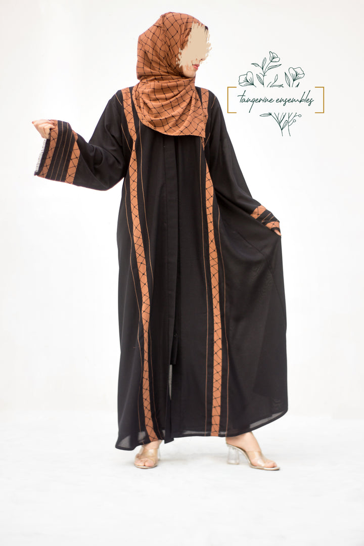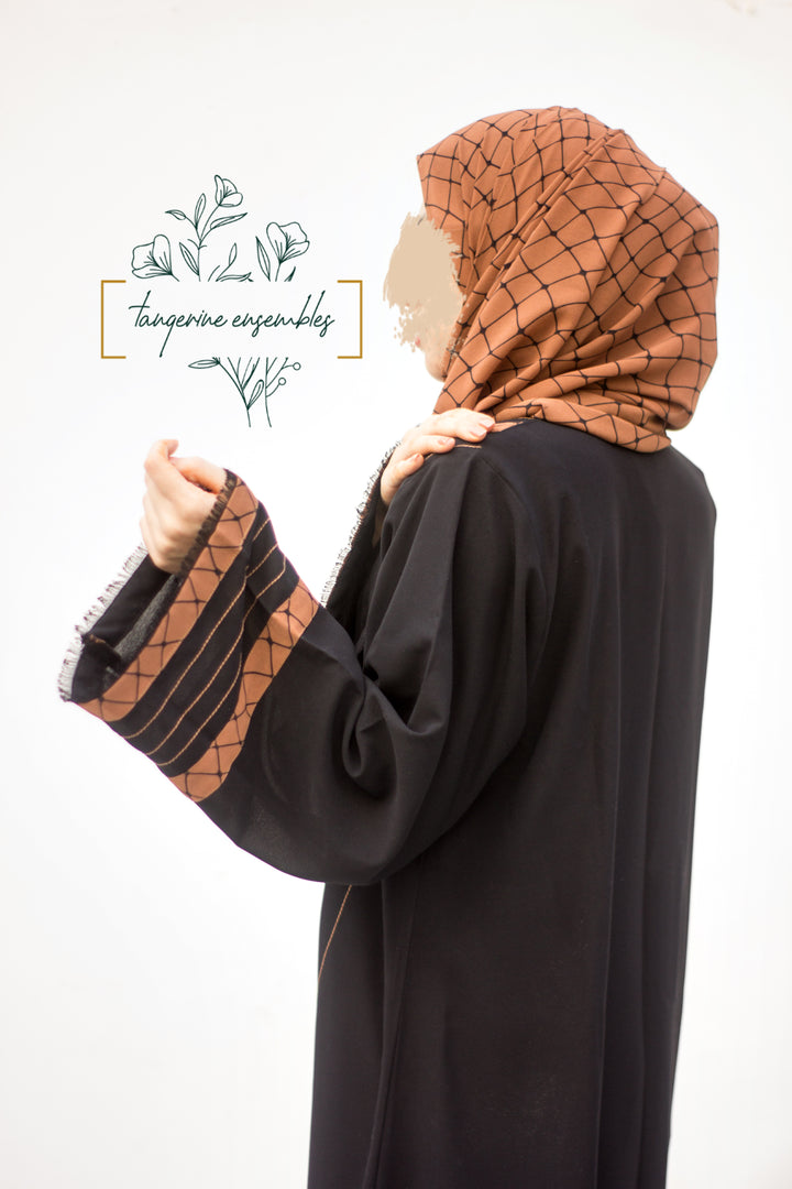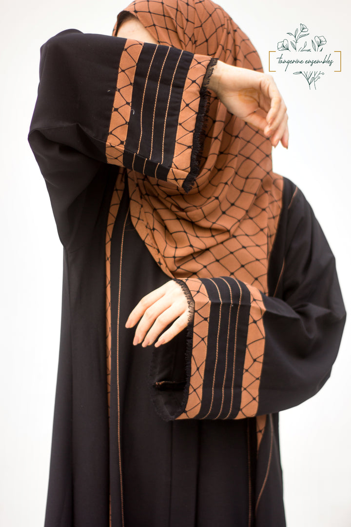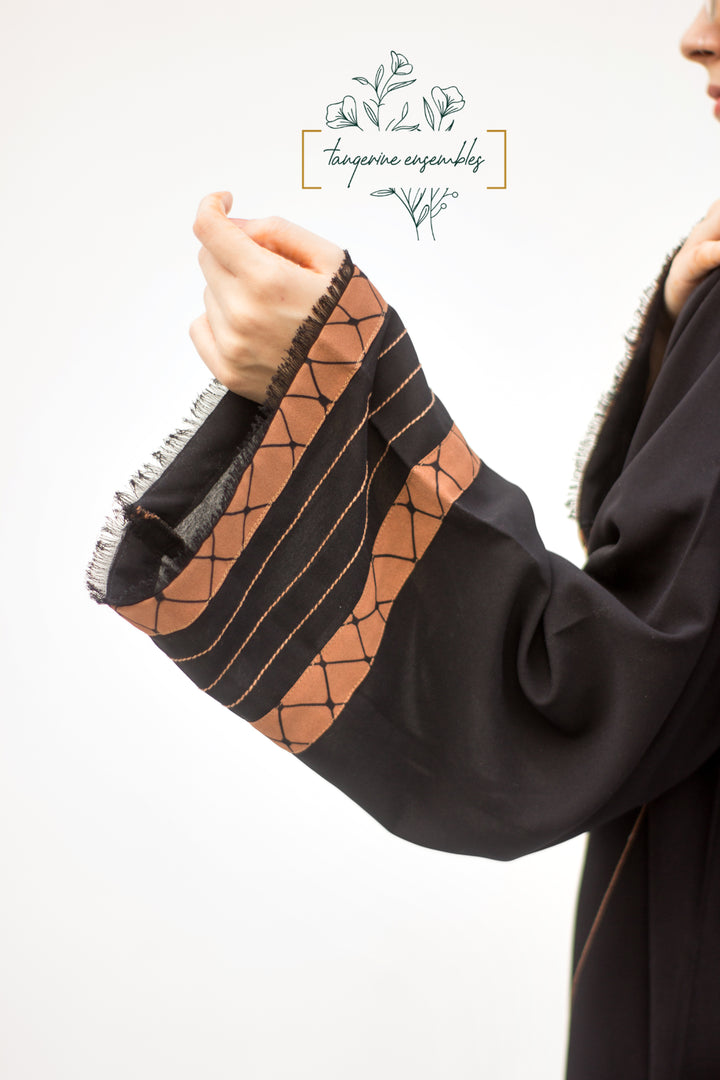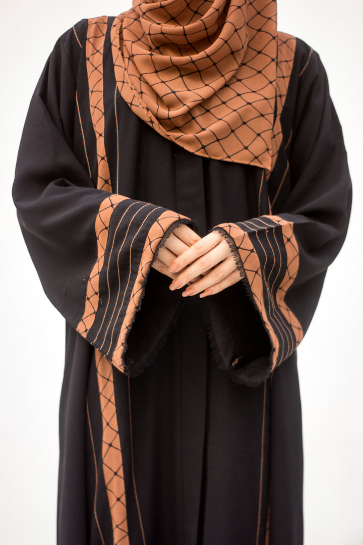 A timeless abaya with a modern twist! The printed scarf, subtle detailing, and fringed sleeves add just the right amount of glam. Crafted from breathable fabric for a flawless look in three beautiful contrasts.