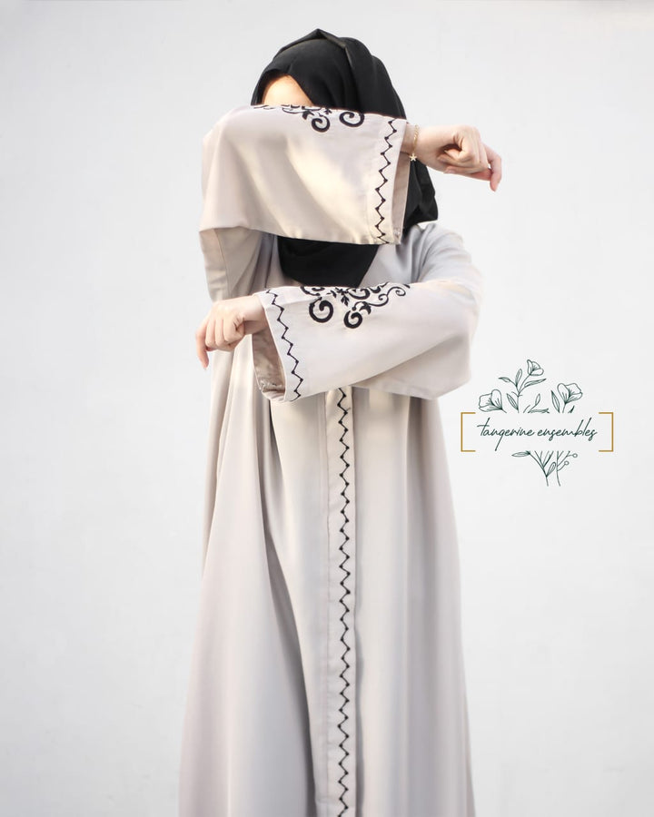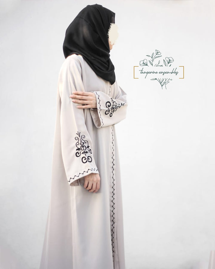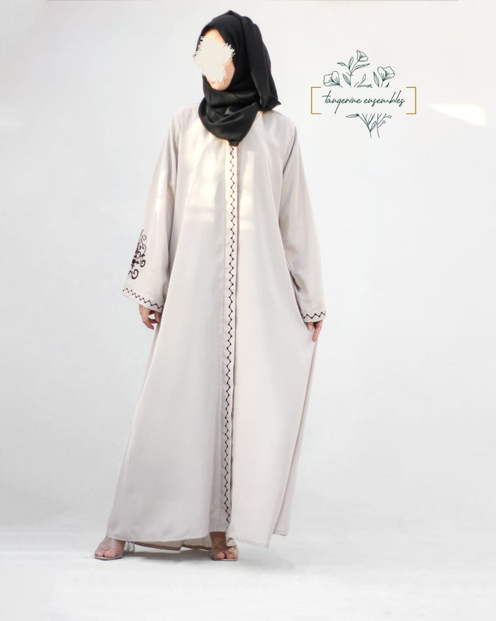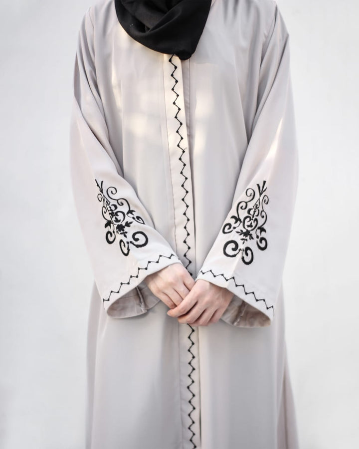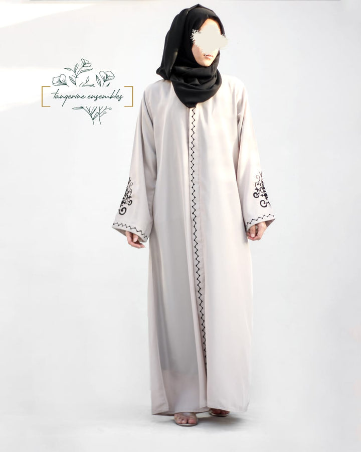 This ivory nada abaya is your go-to piece for when you want to look effortlessly put together. The embroidery on the sleeves and button line adds just the right detail. Super comfortable and perfect for Umrah, everyday errands, or casual meetups.