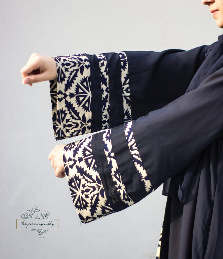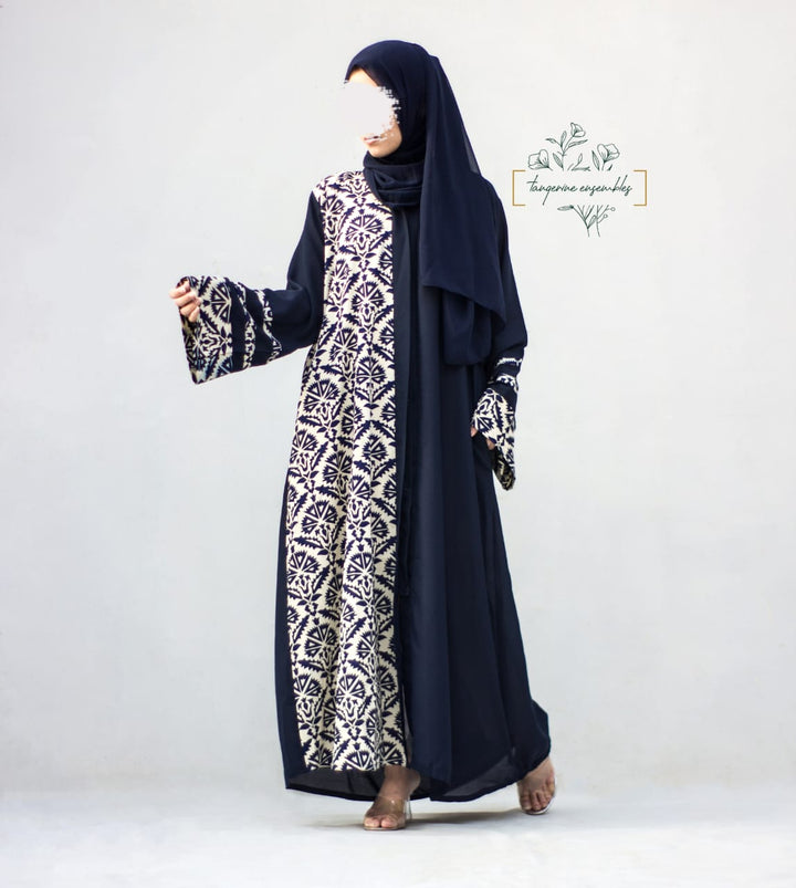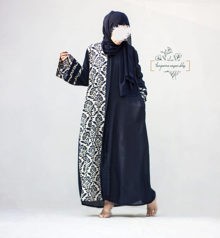 Introducing our Half-Printed, Half-Plain Abaya — a truly unique and modern piece that redefines modest fashion. Designed for the woman who embraces individuality, this abaya blends minimalism with eye-catching detail in the most elegant way.