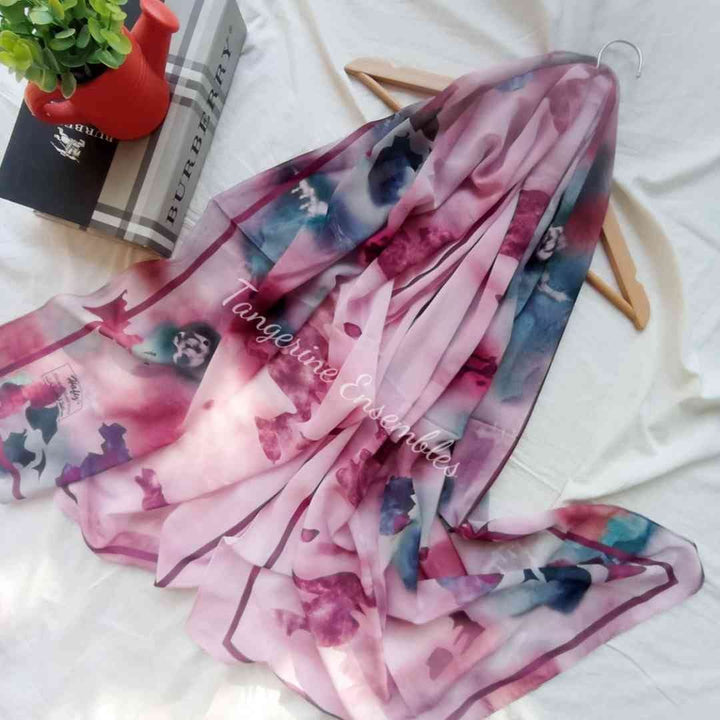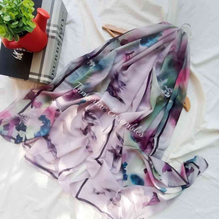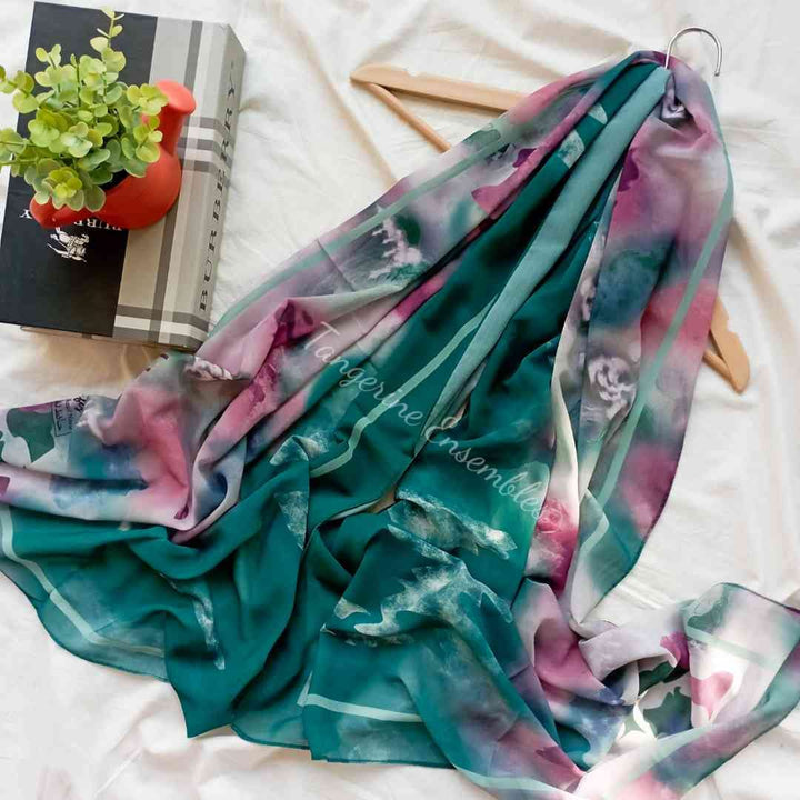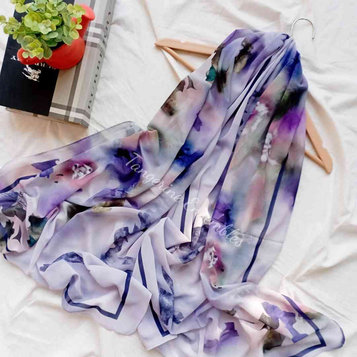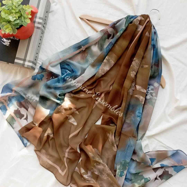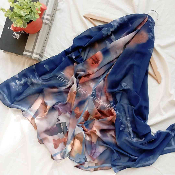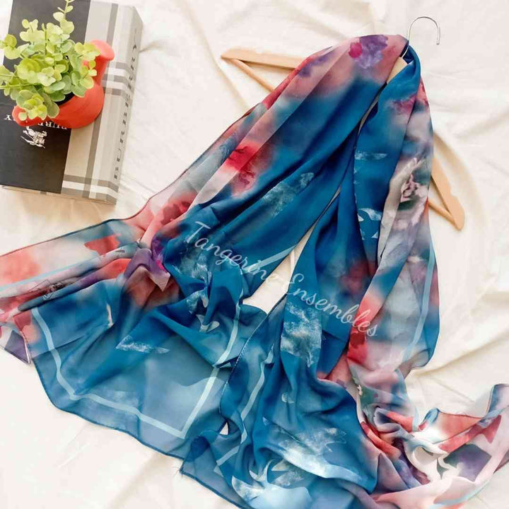 Elegance meets comfort with this butter georgette hijab featuring a dreamy cloudy background, delicate floral print, and a striking edgy border. Lightweight, flowy, and soft to the touch, this hijab is perfect for adding a refined, feminine charm to your everyday and occasion looks.
