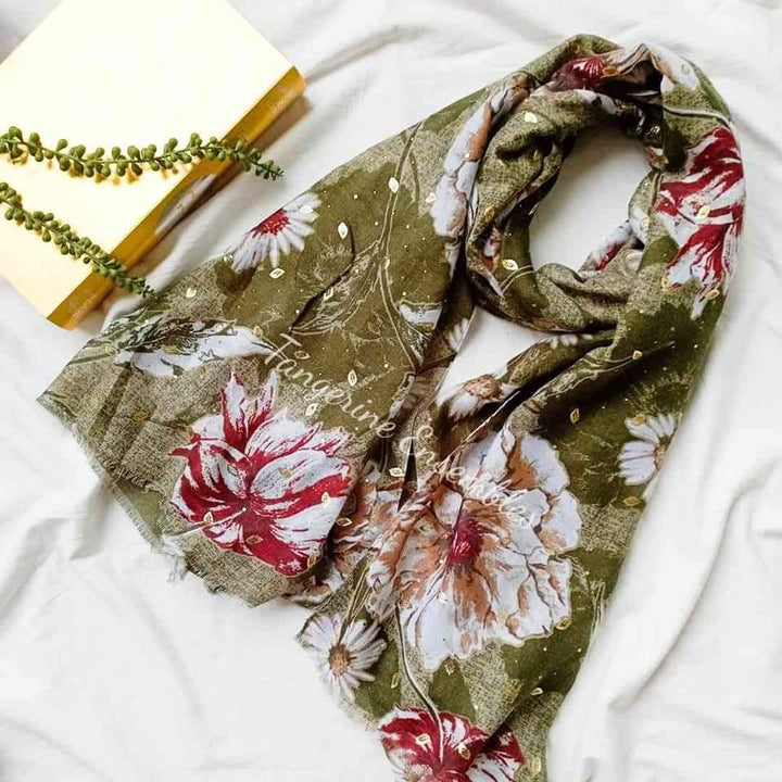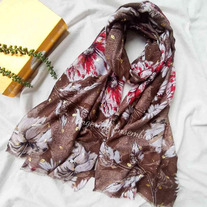An elegant viscose hijab designed with delicate prints and highlighted with luxurious golden foil accents. Lightweight, breathable, and drapes effortlessly, this hijab adds just the right amount of sparkle for both everyday sophistication and special occasions.